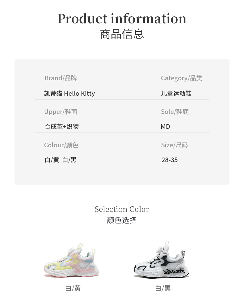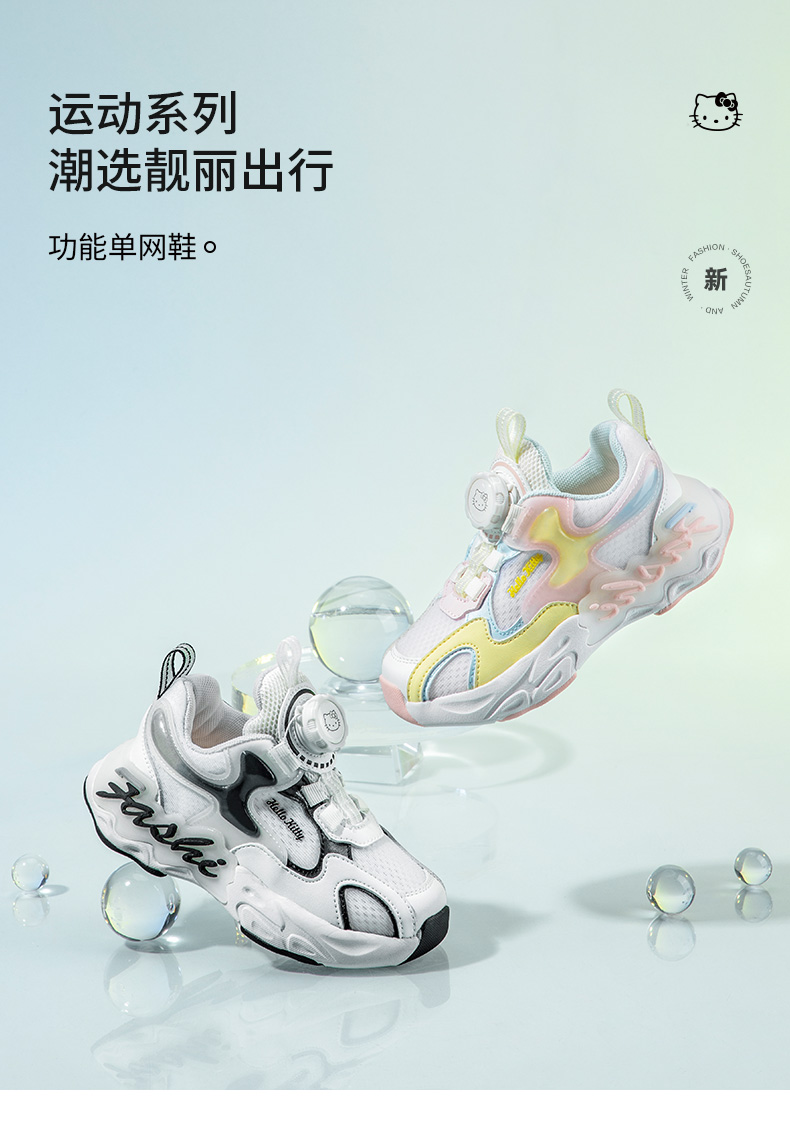 hello Kitty童鞋女童运动鞋儿童旋转扣鞋春秋网面透气休闲鞋潮28-35 K3526847