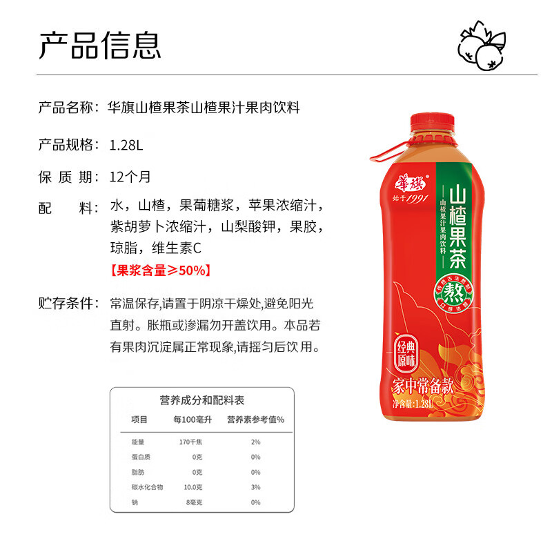 旗经典1991 山楂果茶果肉饮料1.28L*6