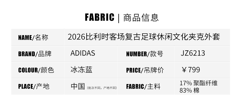 SFS正品 Adidas阿迪达斯2026世界杯比利时队客场复古足球休闲文化夹克外套JZ6213