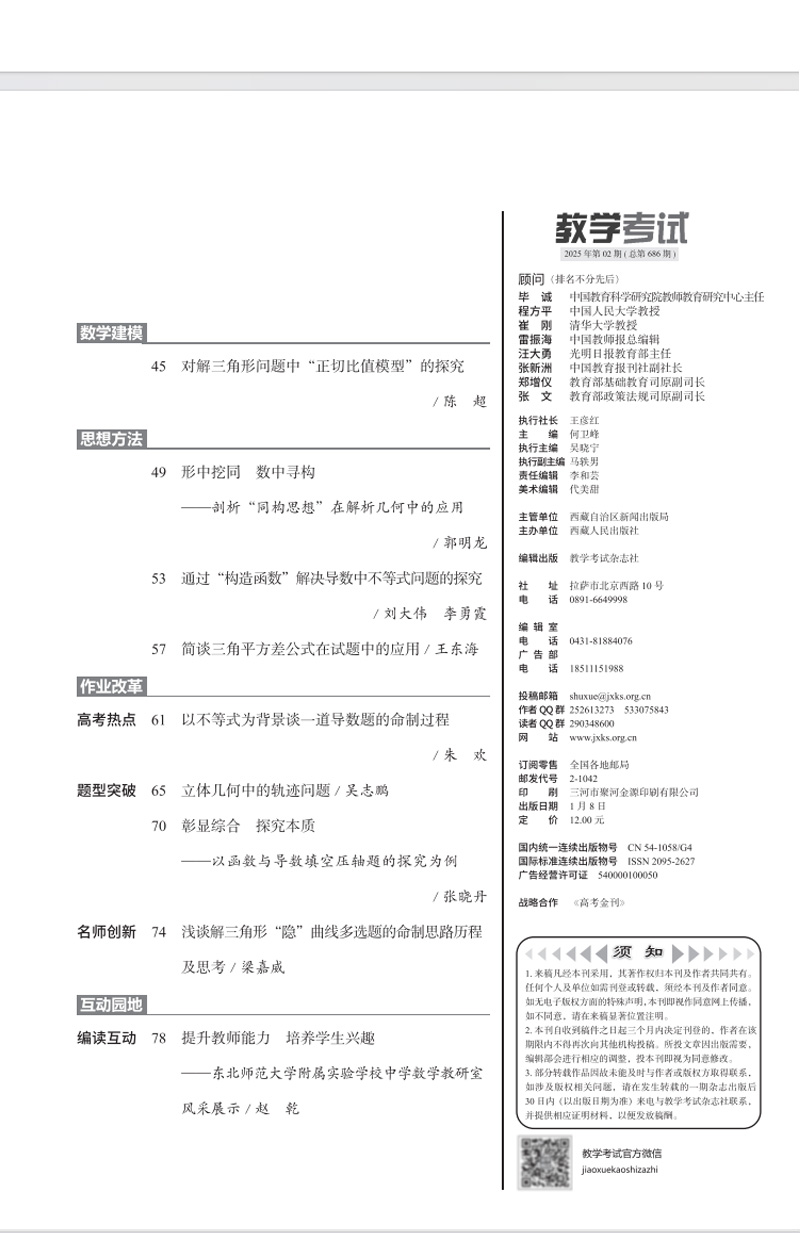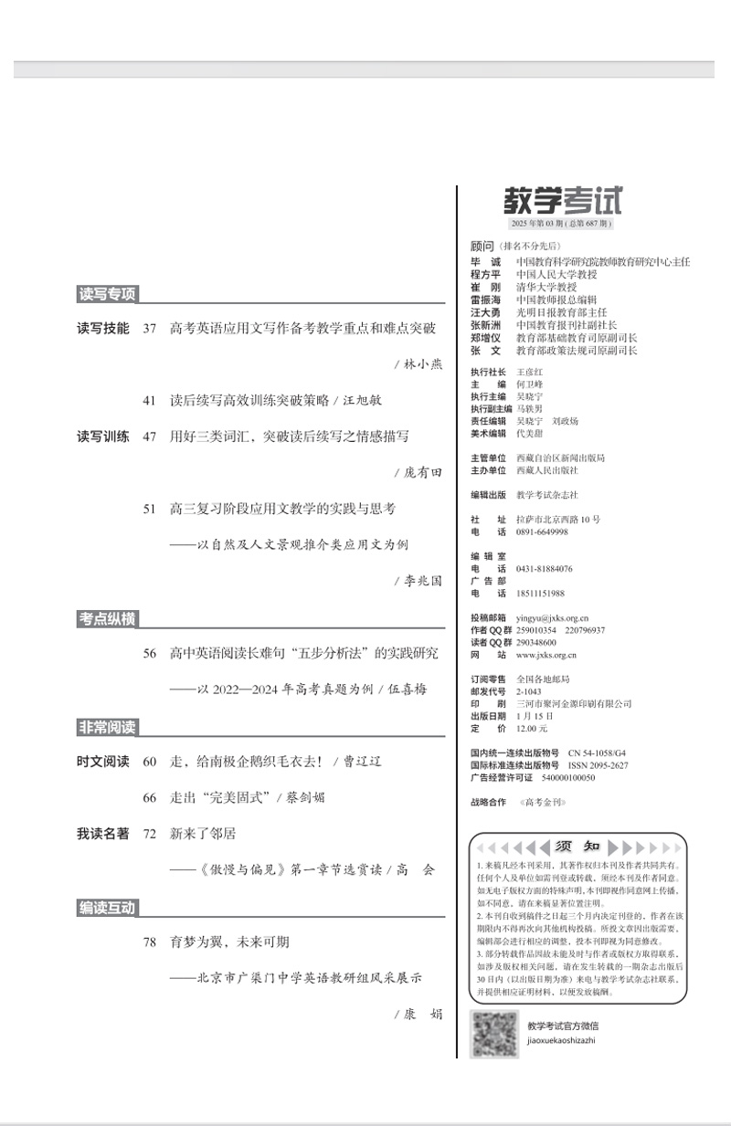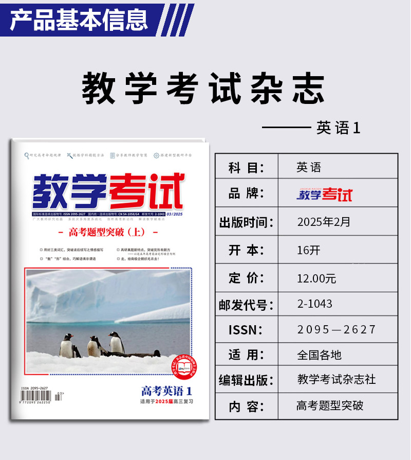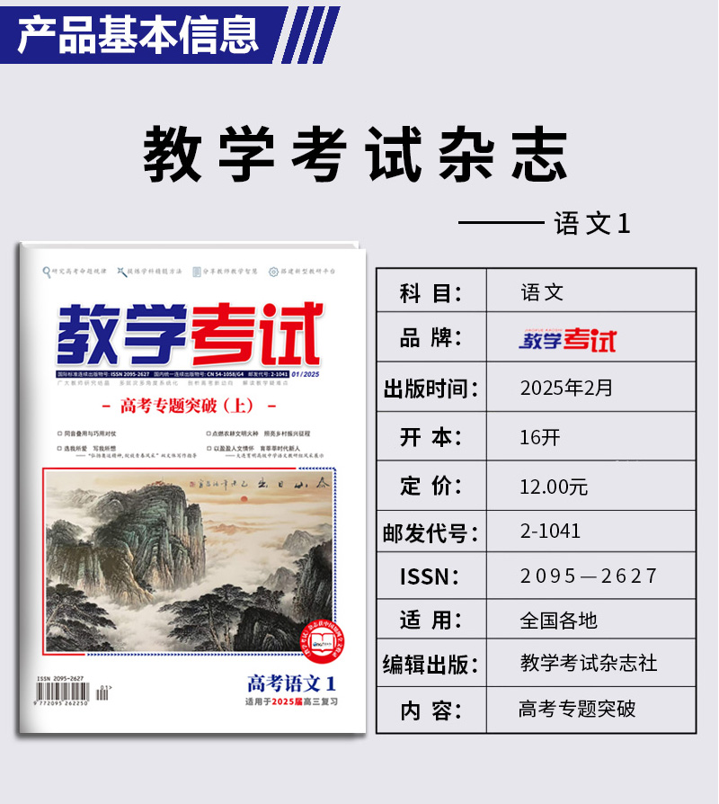 2025 教学考试杂志第1期 语文 数学 英语 物理 化学 生物 政治 地理 历史