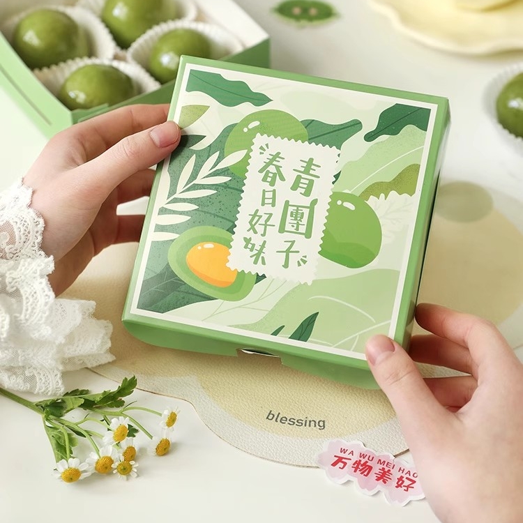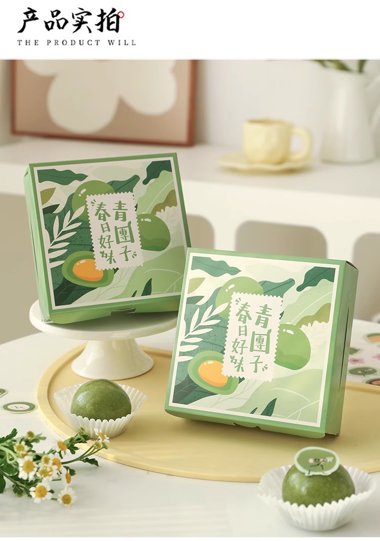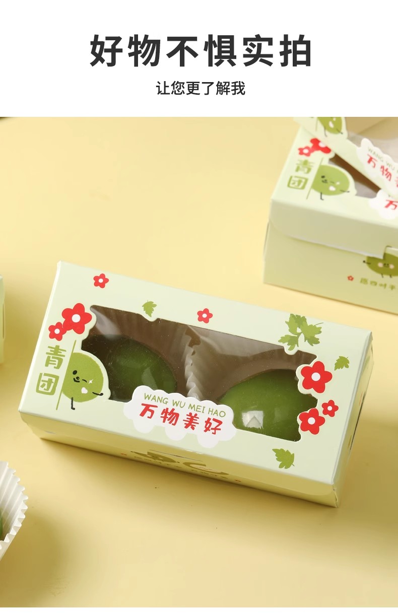 青团包装盒 2粒/4粒青团打包盒/青团贴纸/纸托 万物美好春日好味青团纸盒子