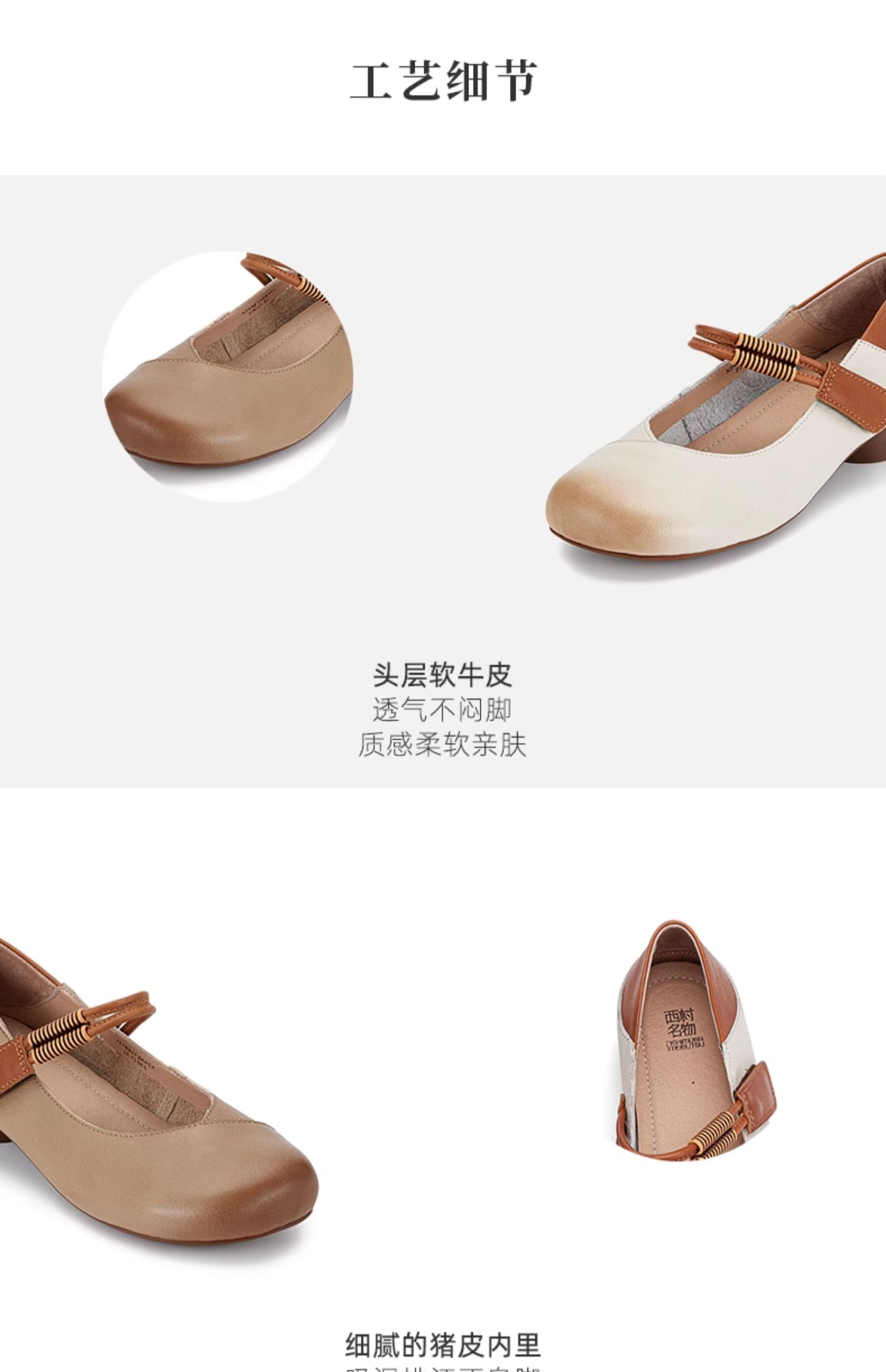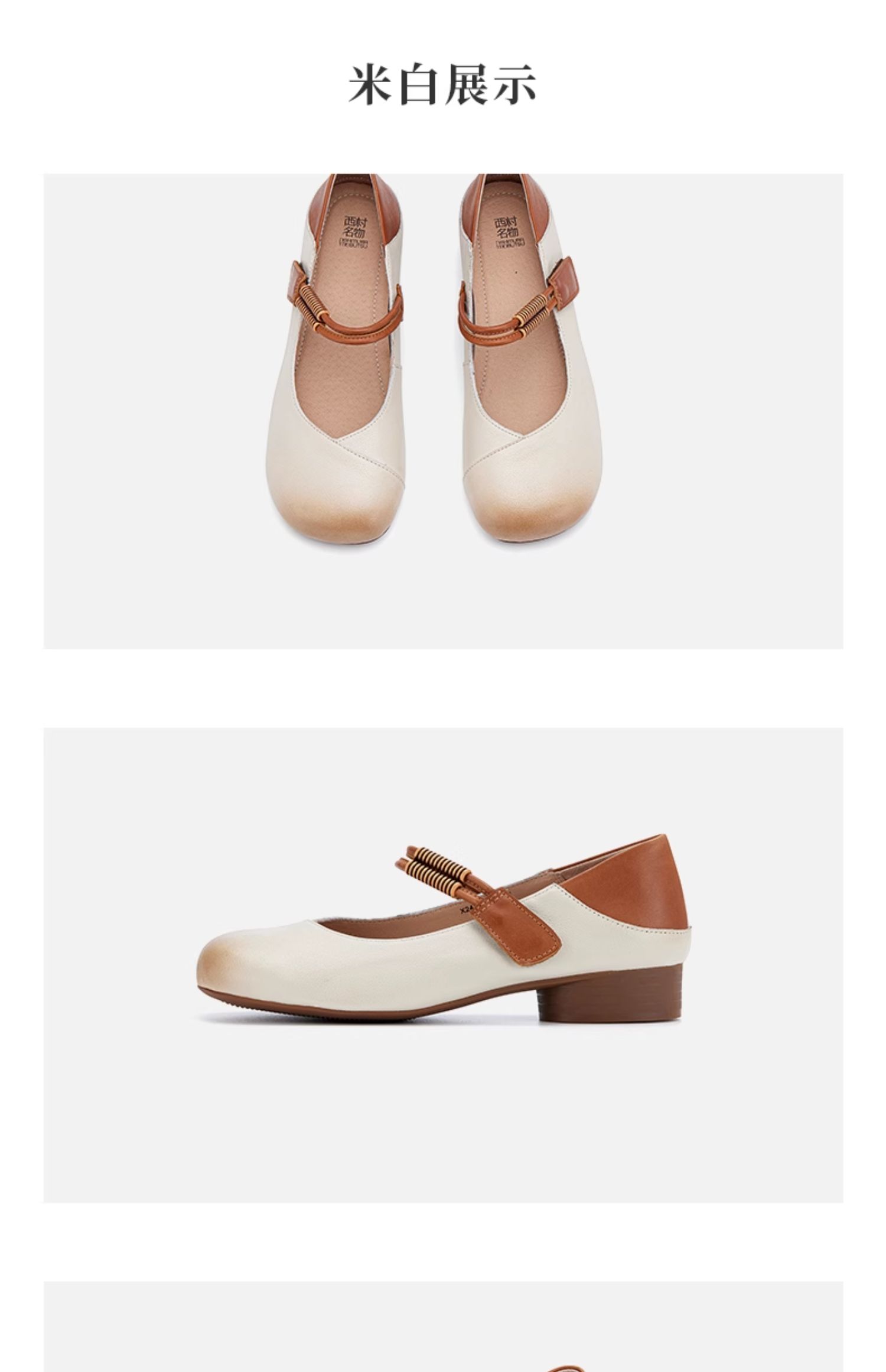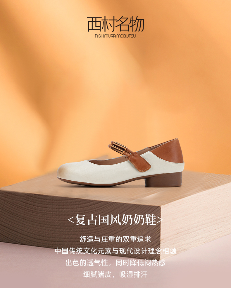 西村名物2024春季新品复古休闲国风奶奶鞋圆头真皮浅口单鞋X24AE11581