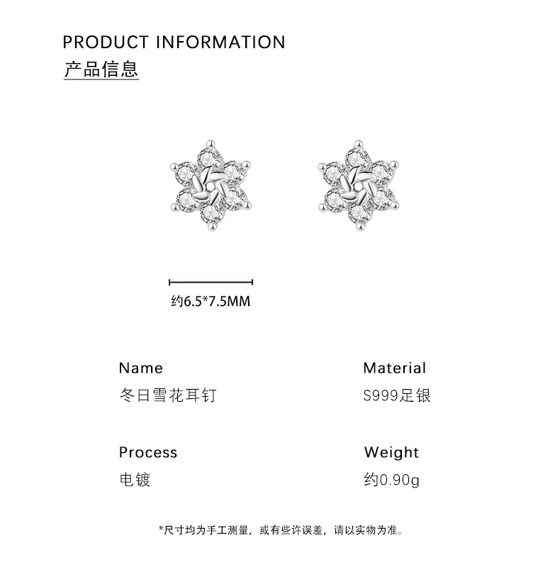 【雪芙】s999纯银雪花花朵耳饰【YXS-E5303】