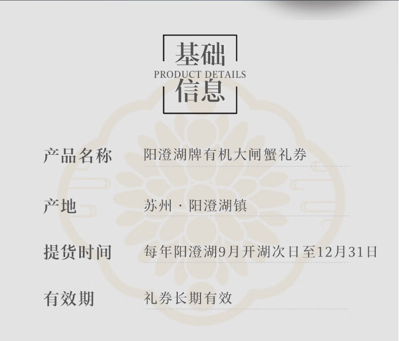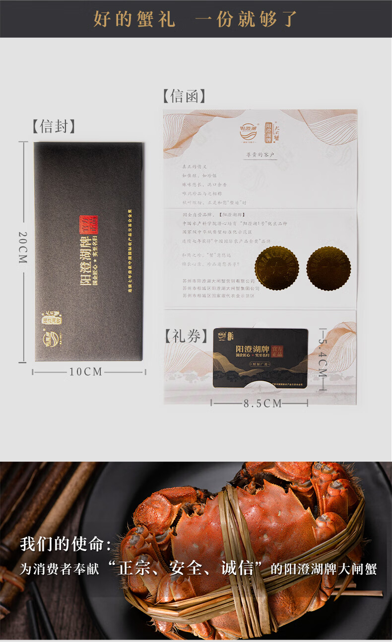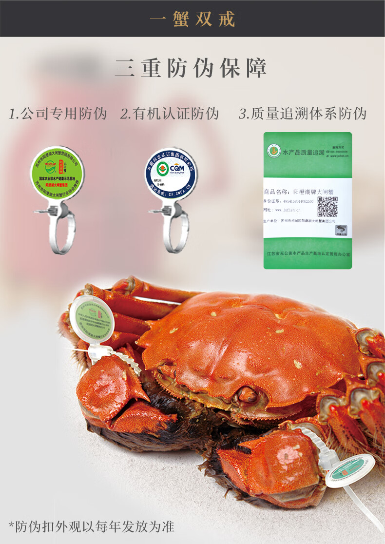 【阳澄湖牌大闸蟹·礼券】有机大闸蟹系列《真情永伴》 出口品质
