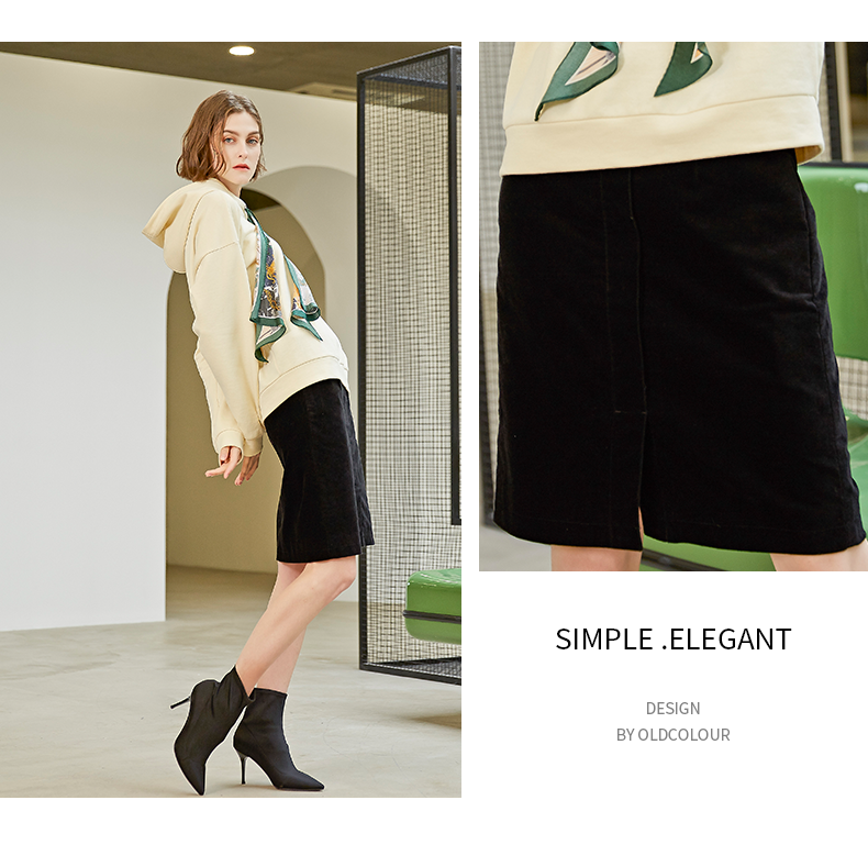 oldcolour春秋季舒适开叉纯色百搭半身裙女裙L32062202