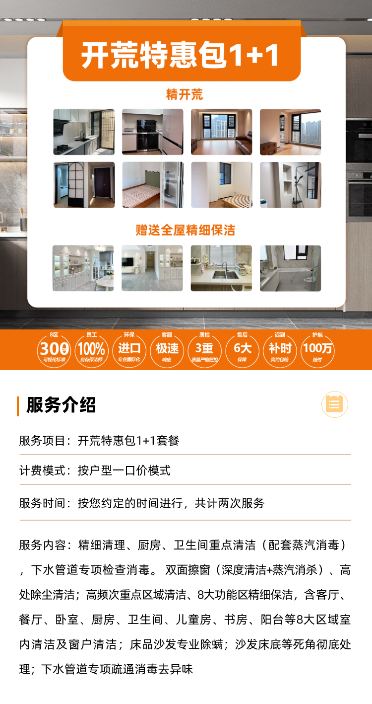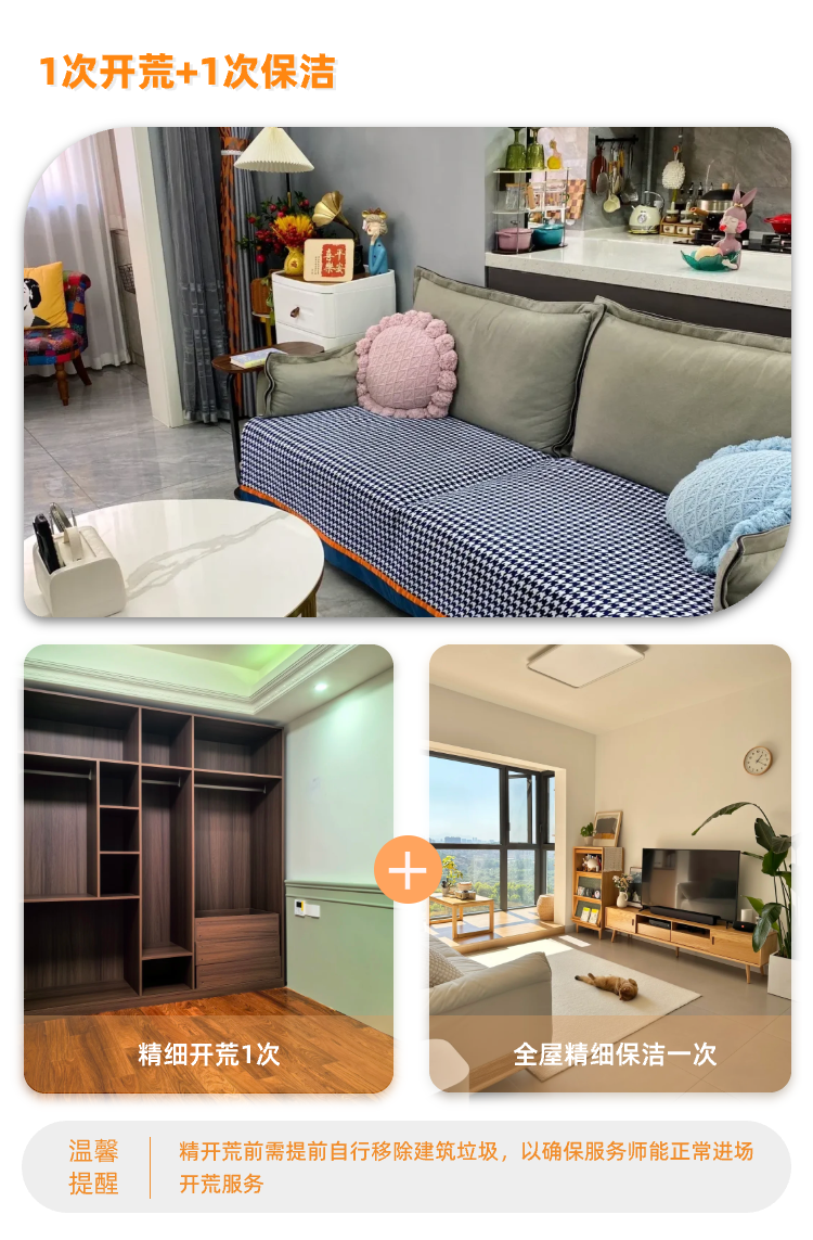 【臻选家政-开荒保洁】1+1保洁服务叠加包 — 长沙养云/玖洲观澜项目专享