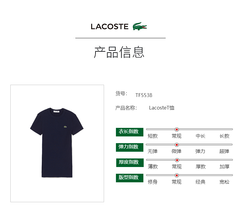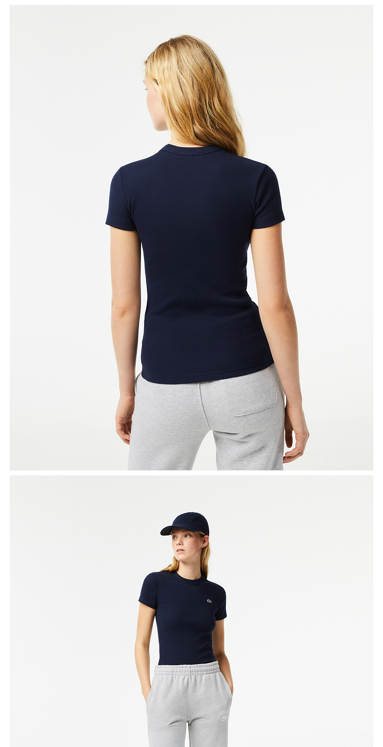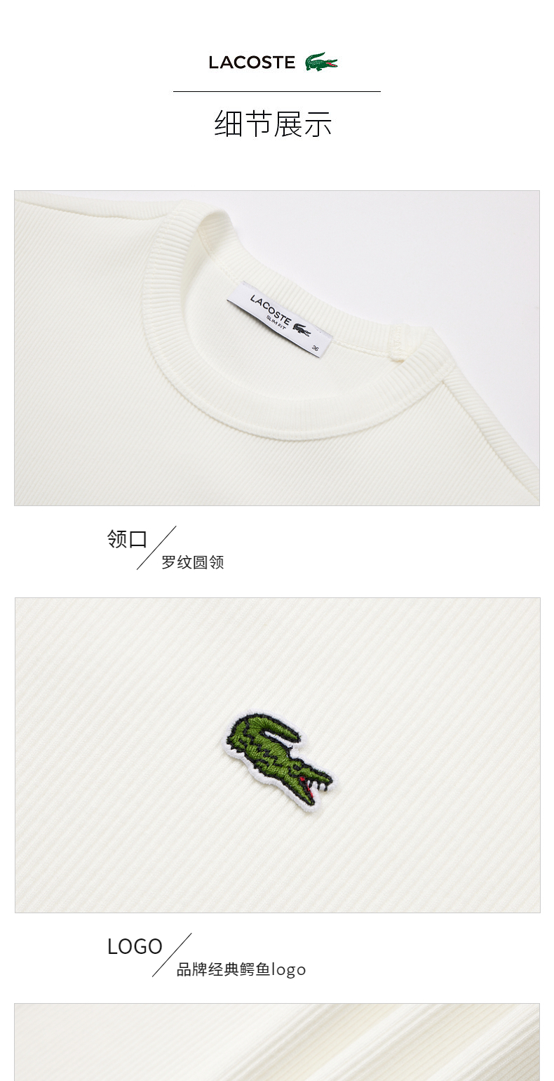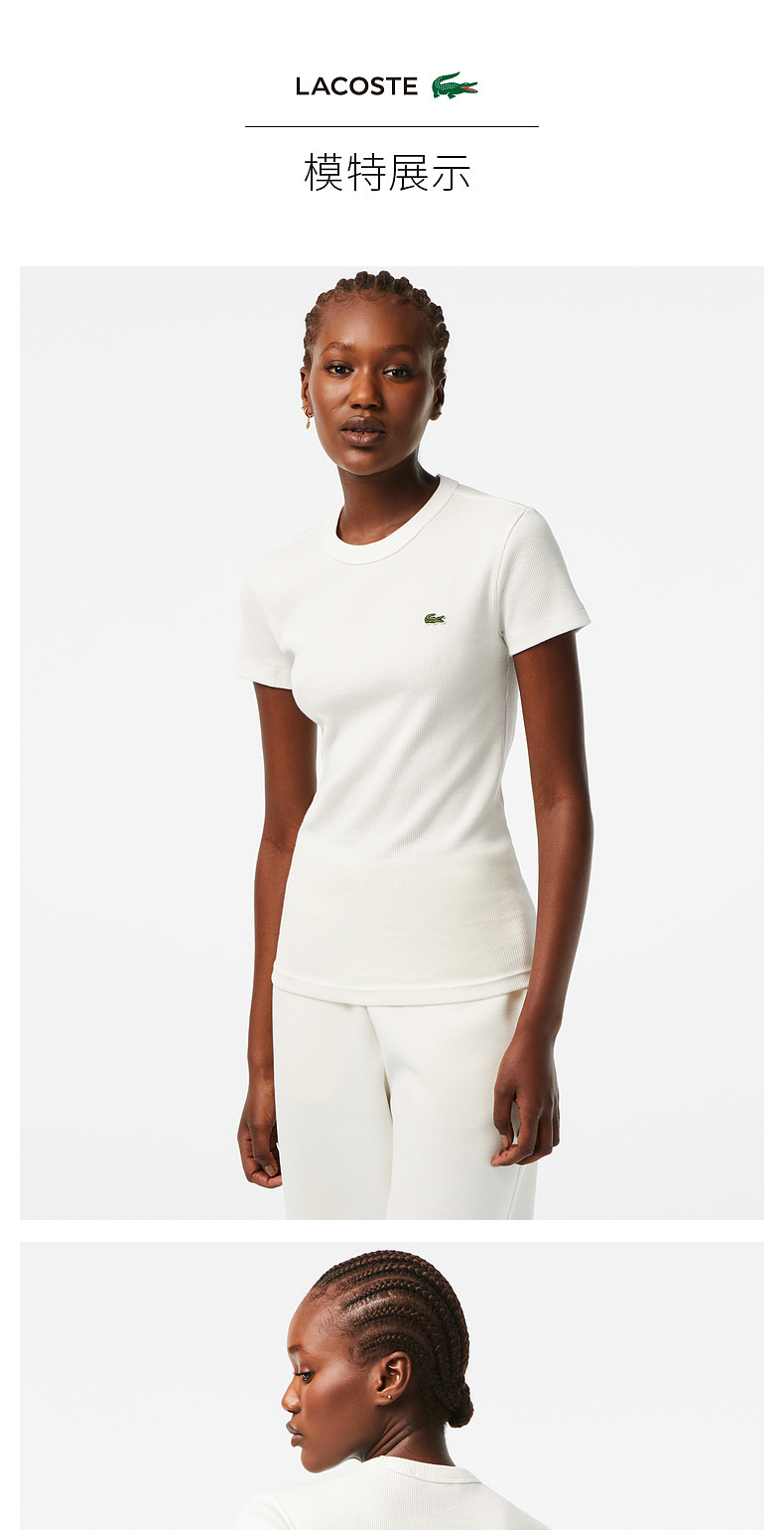 【海南专供价】Lacoste法国鳄鱼女装新款休闲修身舒适纯色圆领T恤TF5538-10