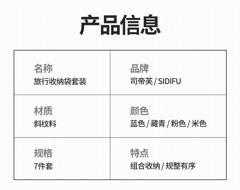 旅行收纳袋七件套装衣物收纳包数码鞋子收纳袋行李箱分类整理袋