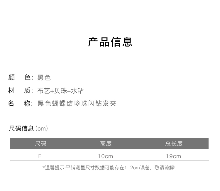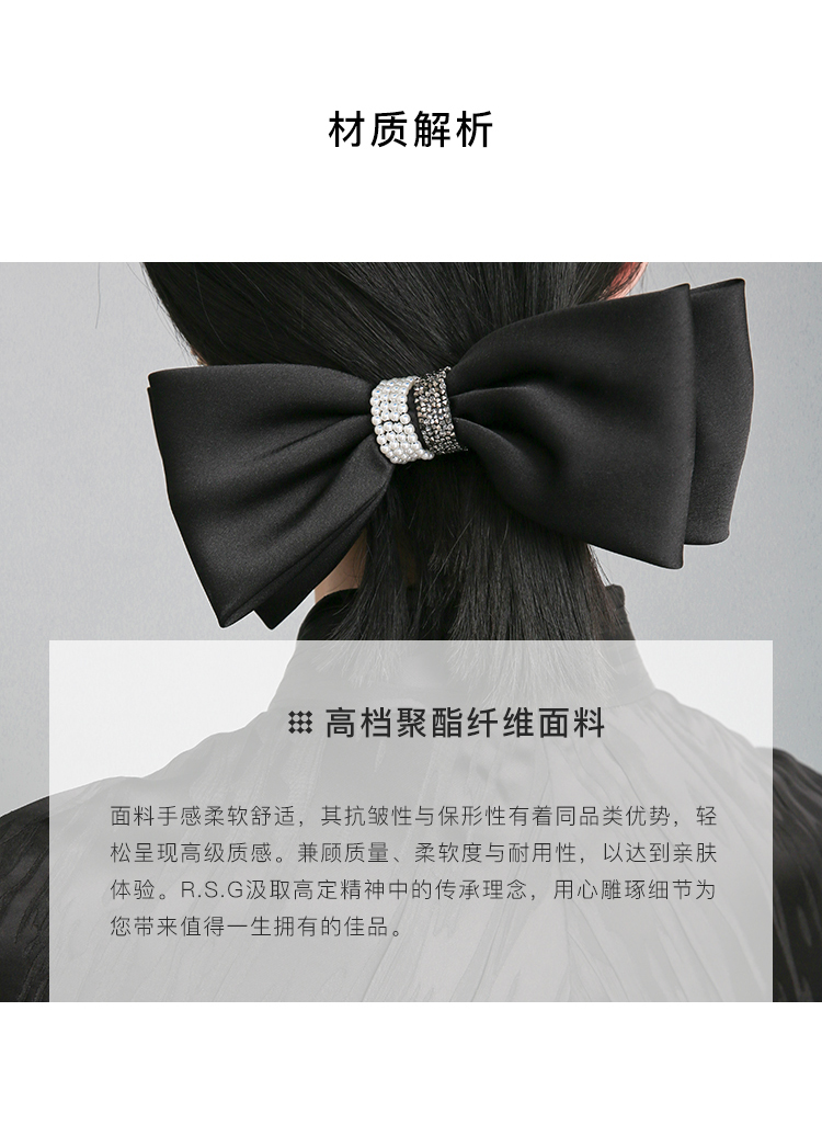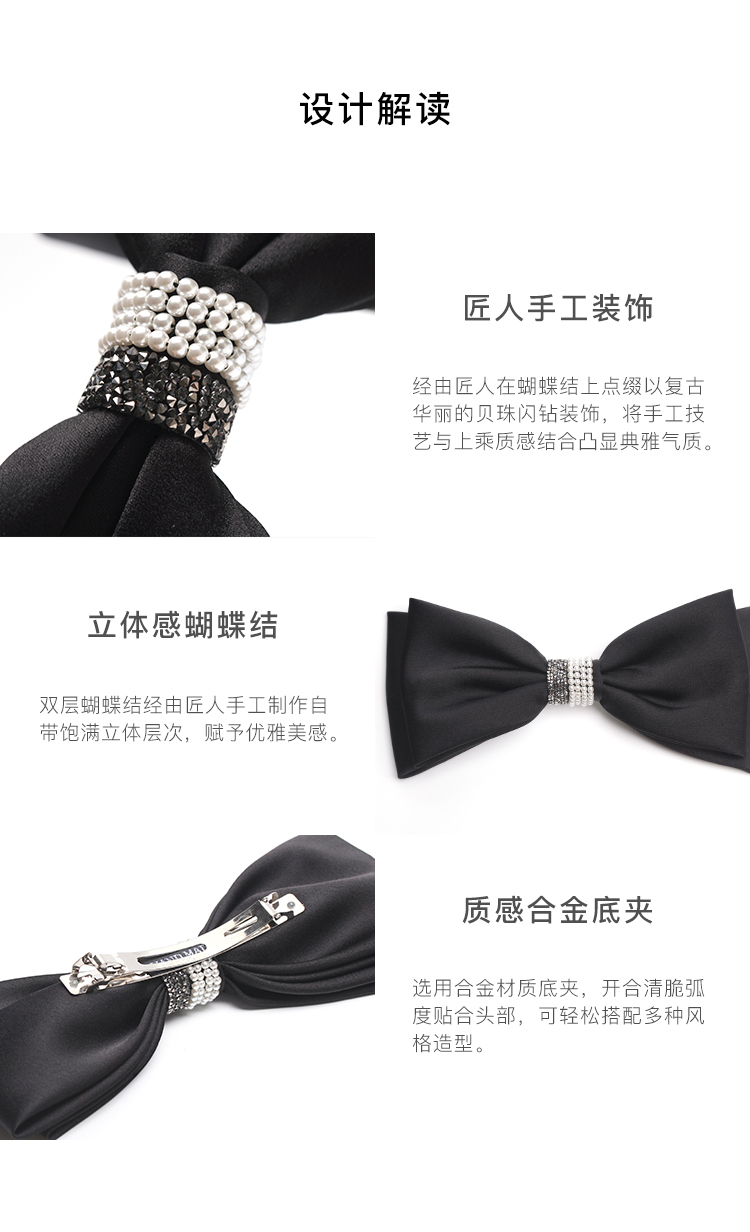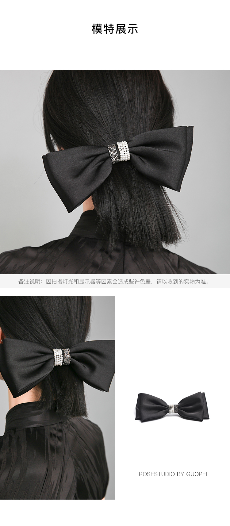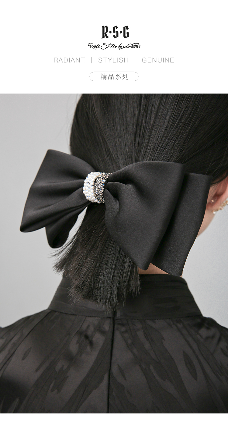 RSG郭培成衣品牌法式缎面黑色大号蝴蝶结发夹顶夹