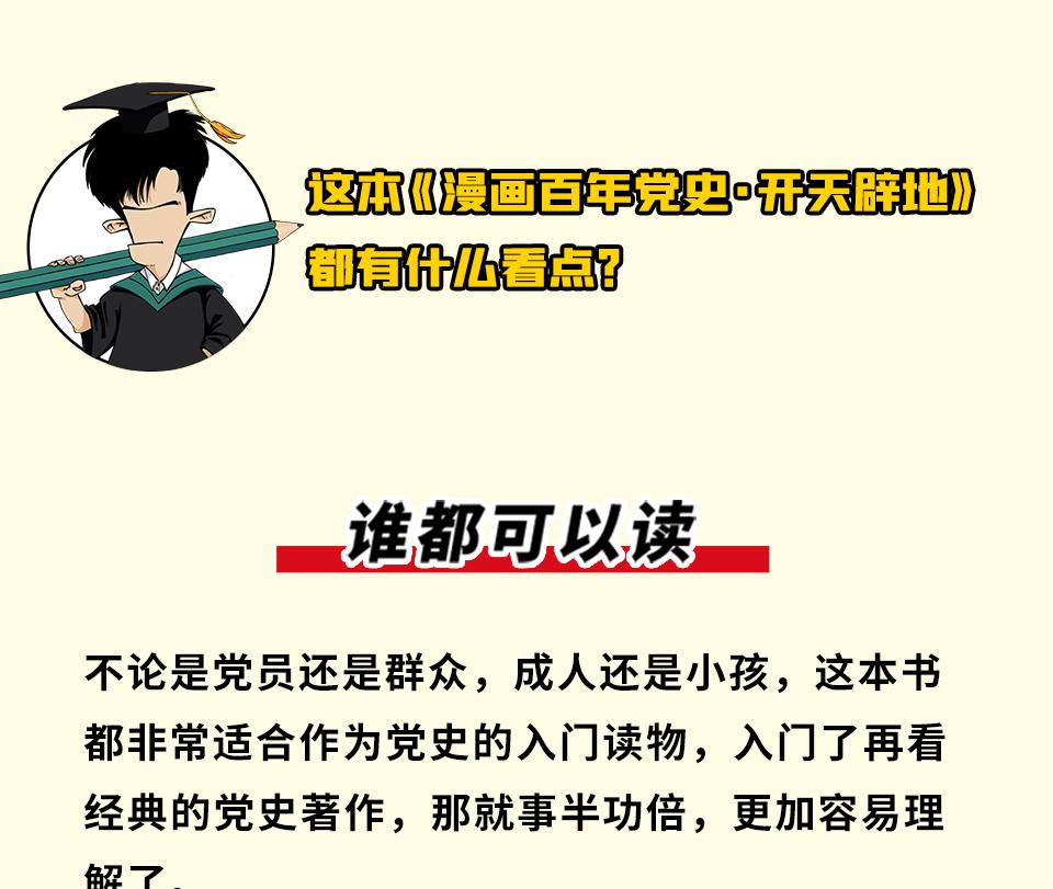 一部轻松好读的中共创业史。一本书快速了解中国共产党一路走来“爬坡越岭”“打怪升级”的震撼历程,这本漫画很有料!