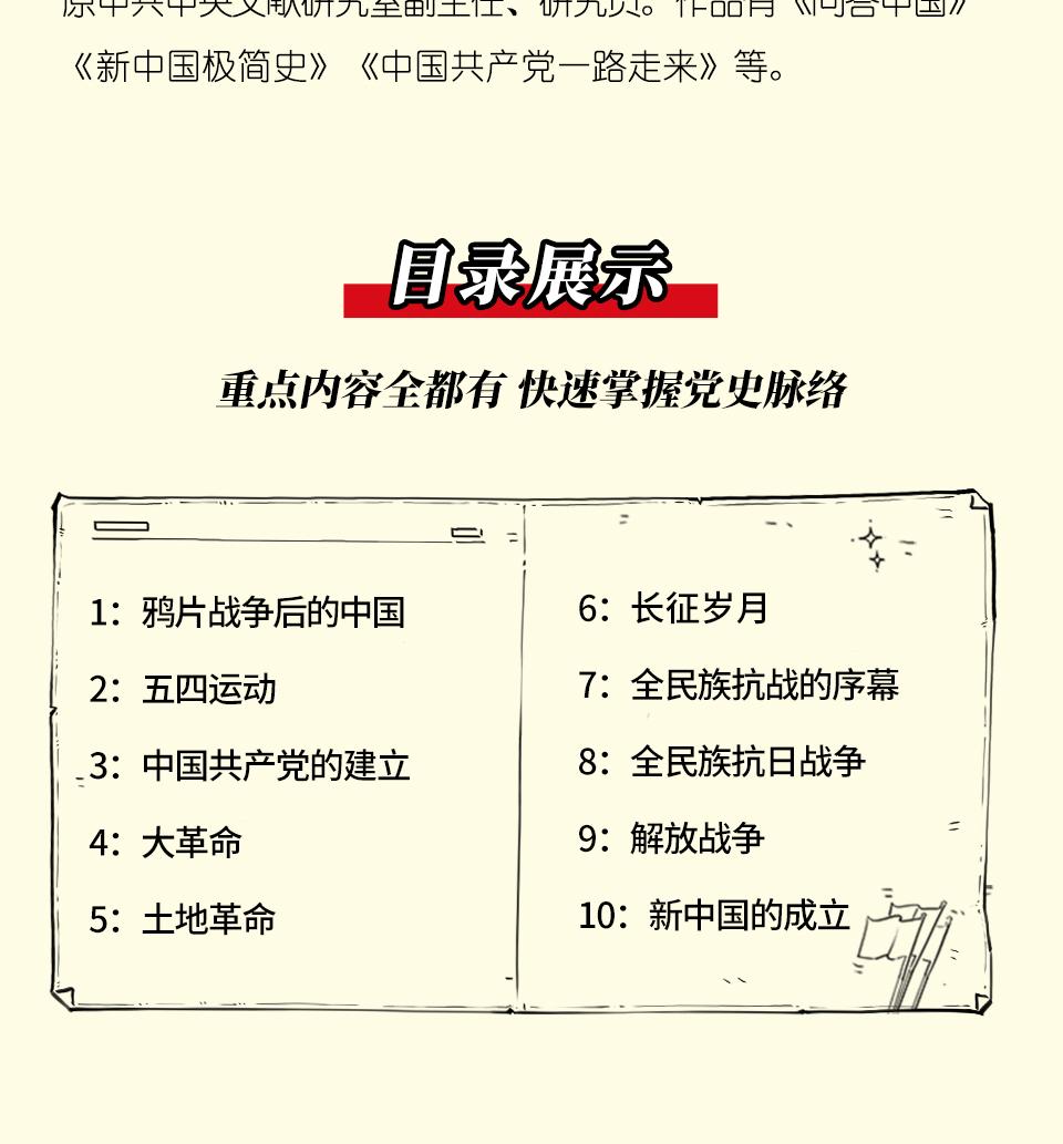 书稿由党史权威专家陈晋拟定提纲、提供素材、审校修改,由现象级畅销书作者陈磊团队创作漫画和文案,强强联合确保内容的权威性和可读性,以富有时代气息的语言和贴近青年人的漫画表现形式,突破以往厚重严肃的党史类书籍的写作方式,开启党史阅读新形式,让读者爱上读党史,助力党史教育入脑入心。