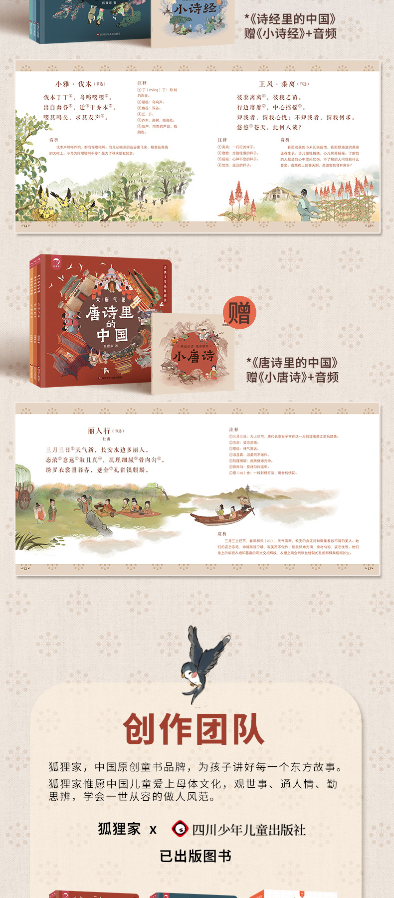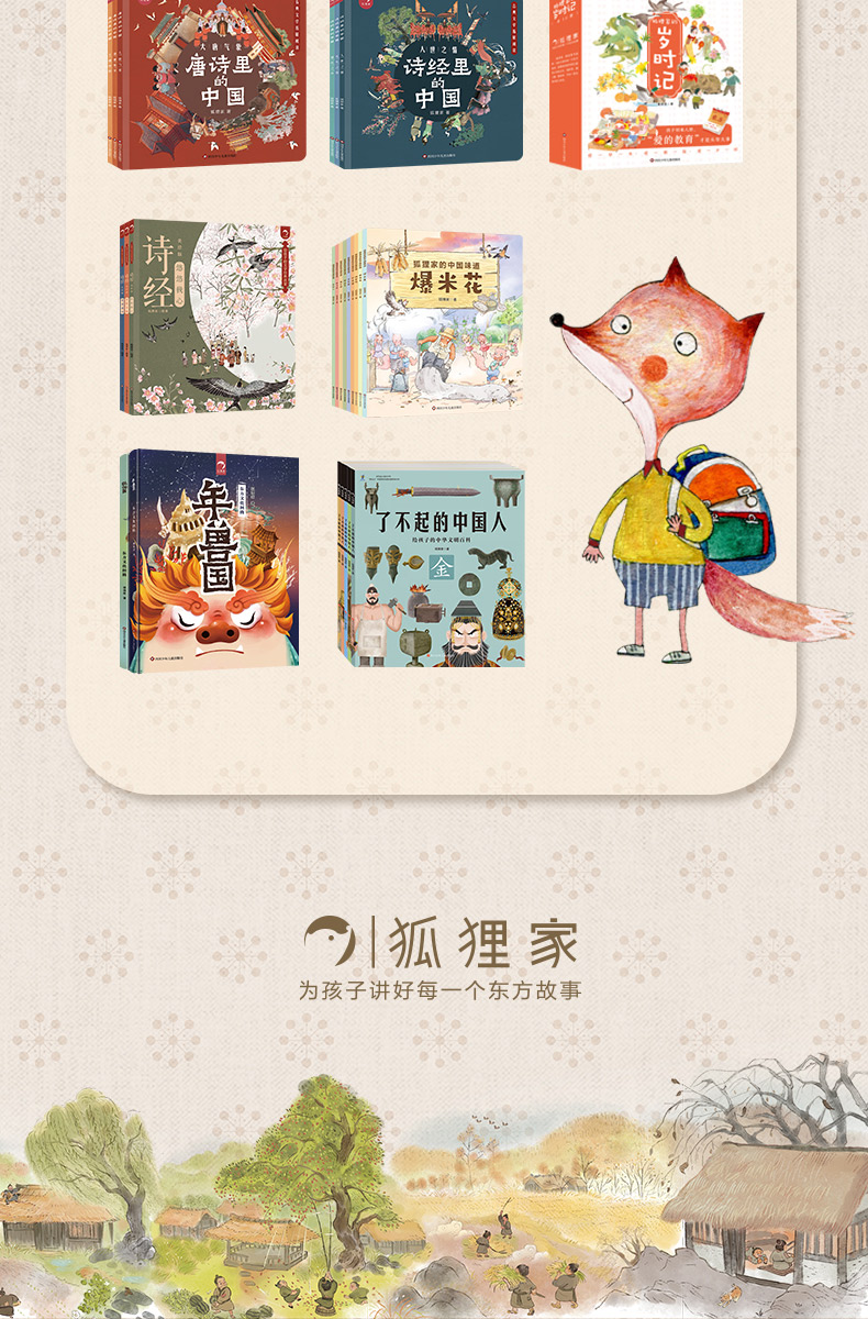 - 狐狸家专注于东方文化儿童教育,执念于“为孩子讲好每一个东方故事”。 惟愿中国儿童爱上母体文化,学会感时、惜物、得体,学会一世从容的做人风范。