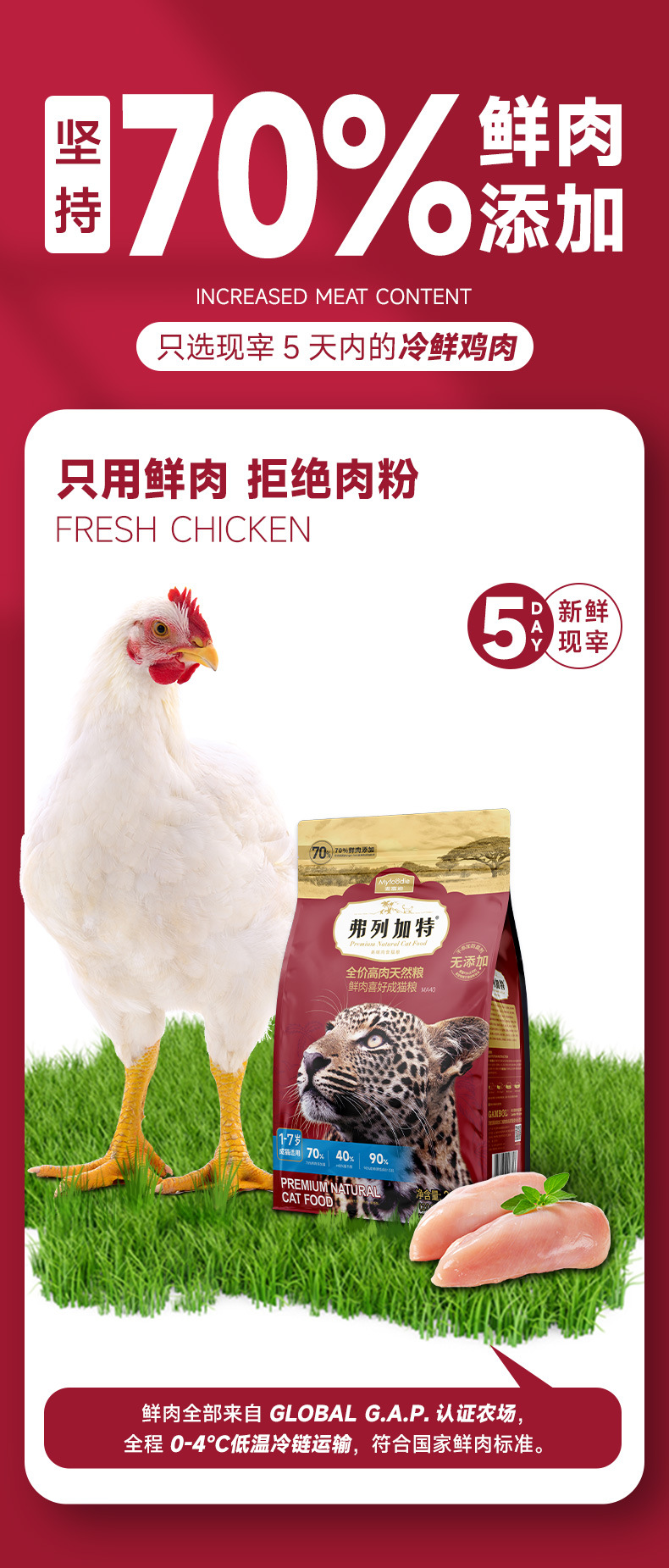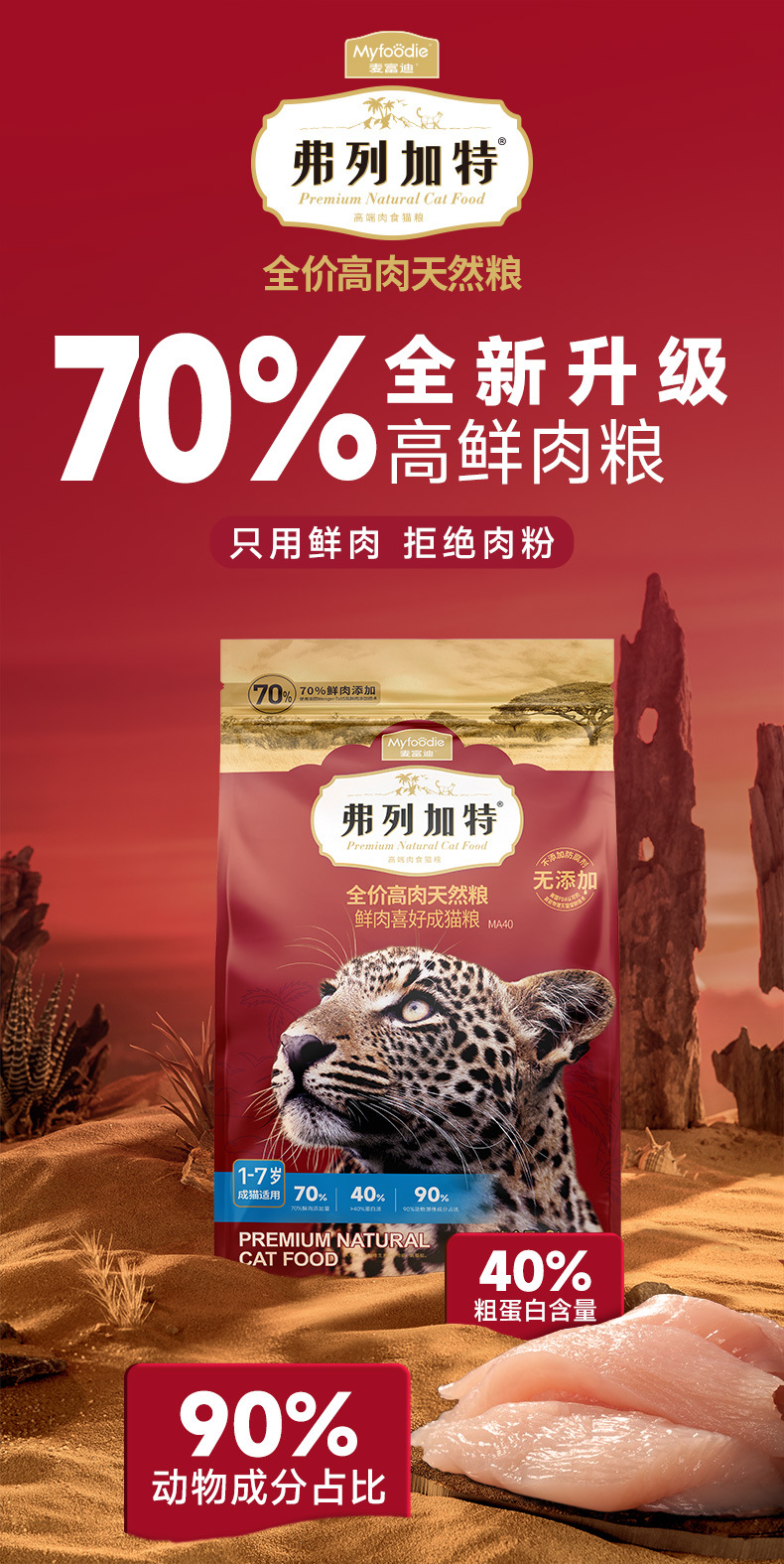 弗列加特鲜肉喜好成幼猫专用70%鸡肉猫粮无谷营养高蛋白增肥发腮