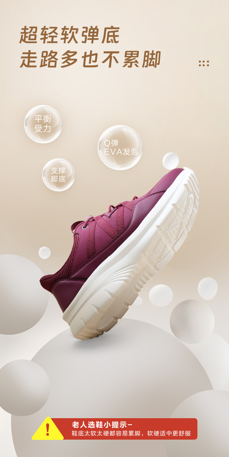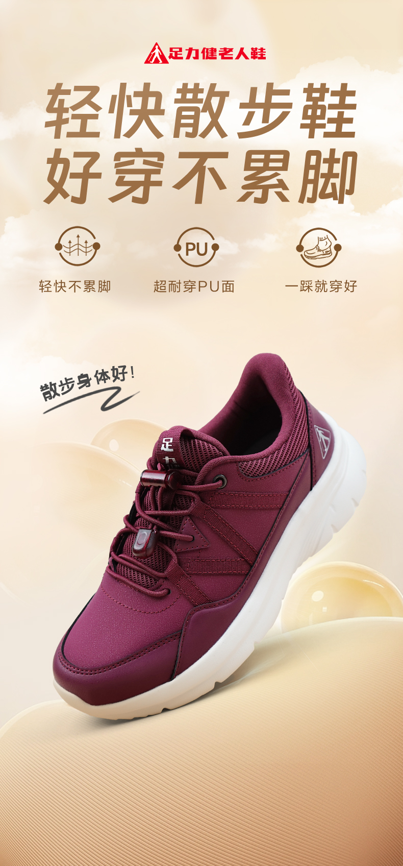 【足力健轻快散步鞋】轻快、软弹、透气,走路省力不易累脚,耐脏耐蹭好打理,更加不易滑散步鞋2431384F