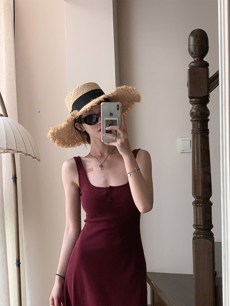 现货 超模裙 轻欧美肯豆风 门襟纽扣吊带连衣裙