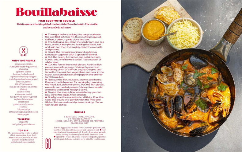 这是一本与众不同的食谱,包含 40 种典型的法国食谱,从早餐到晚餐和甜点,以及有关该做什么和去哪里的信息。 探索好的绿色空间,享受野餐,并在城市知名的小酒馆度过一段时光,感受灵感,制作您自己的 Moules Frites、Coq Au Vin 或 Crème Brûlée。