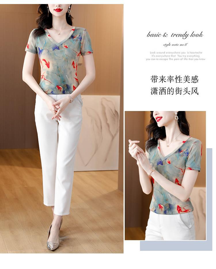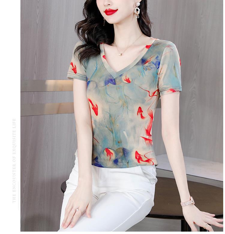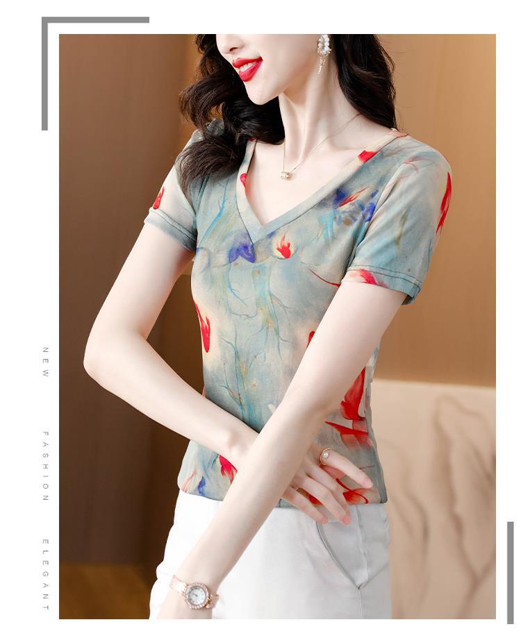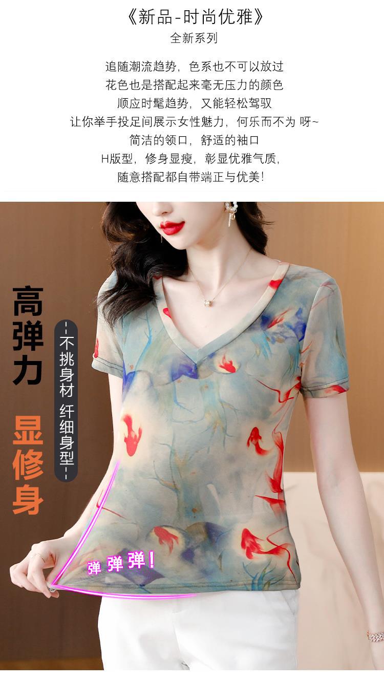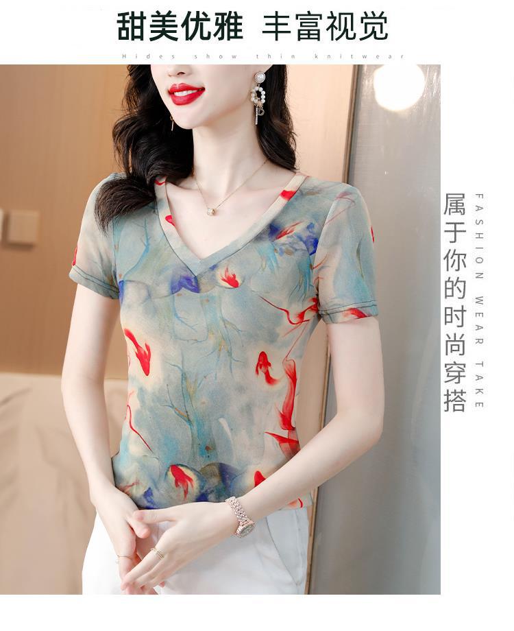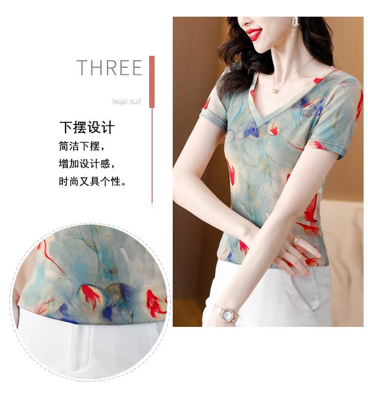 夏新款时尚,V领短袖T恤遮肉显瘦舒适透气洋气打底小衫上衣KQL-301H9371