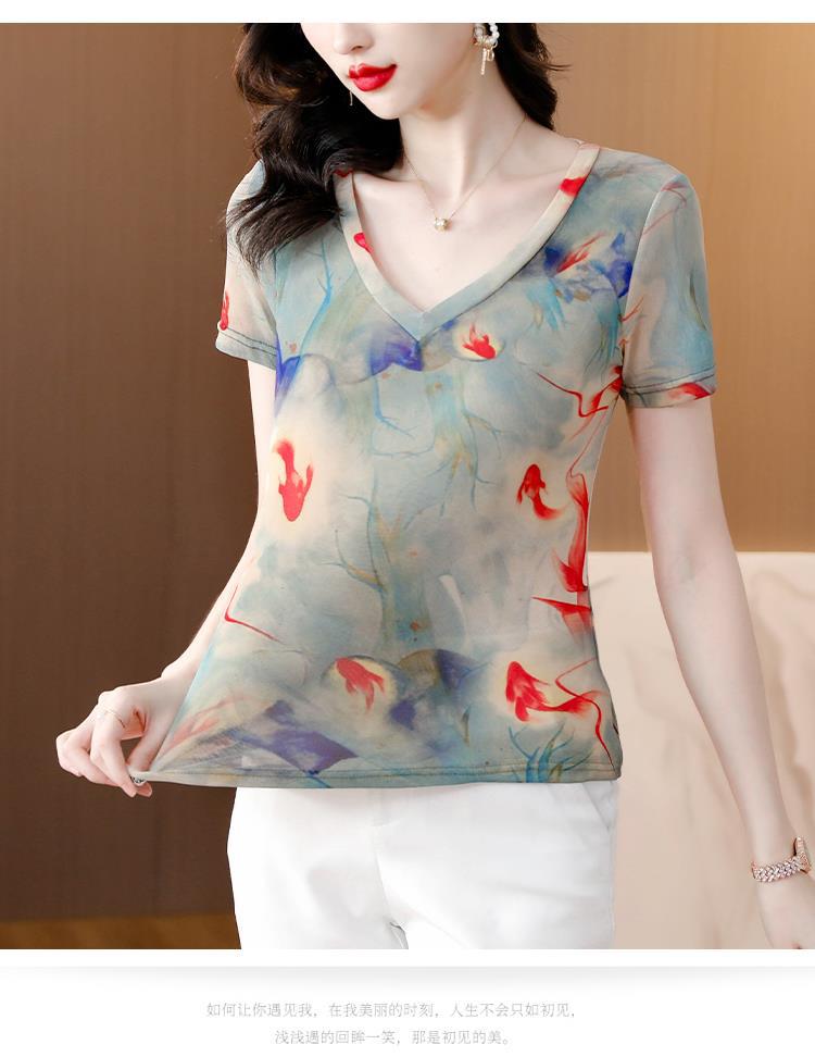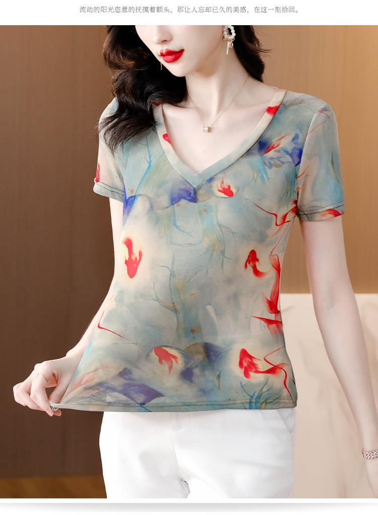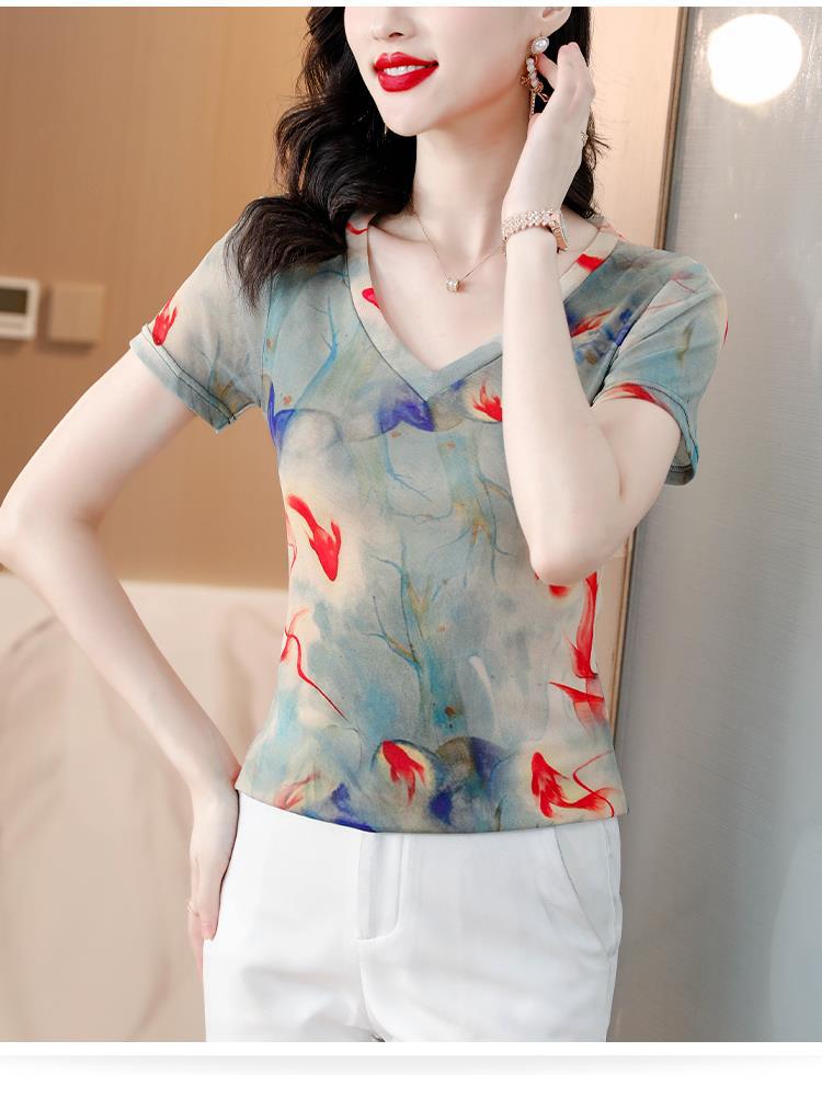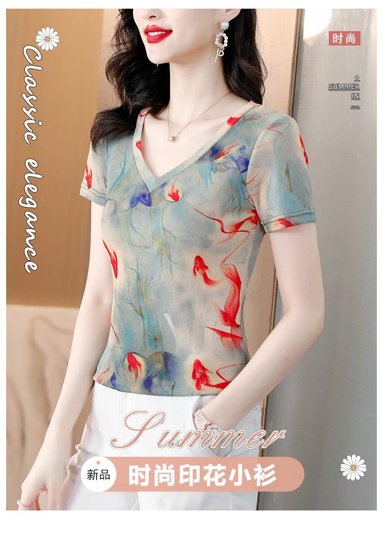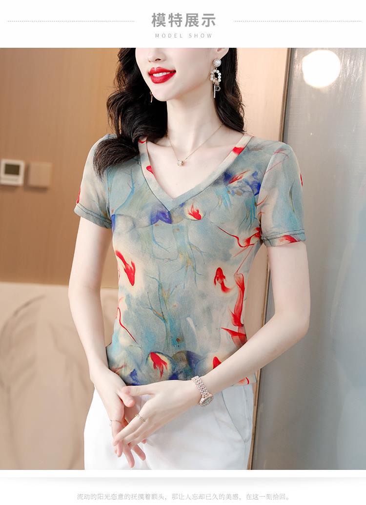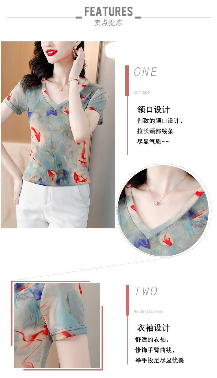 夏新款时尚,V领短袖T恤遮肉显瘦舒适透气洋气打底小衫上衣KQL-301H9371