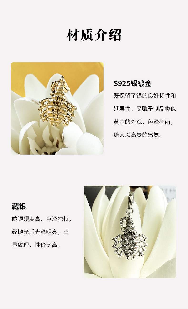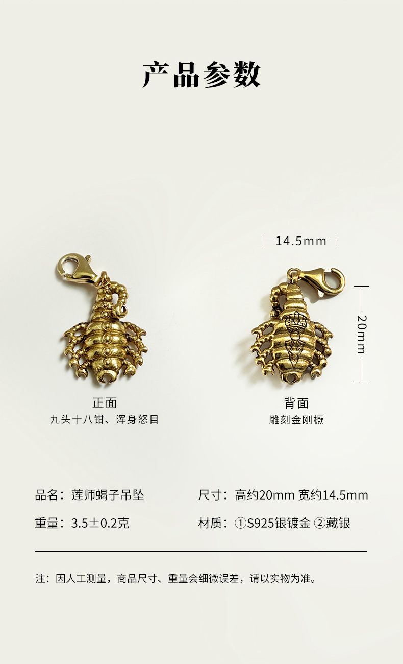 藏银款、S925纯银款蝎子吊坠挂件民族风随身手链手串挂饰配饰莲师铁蝎