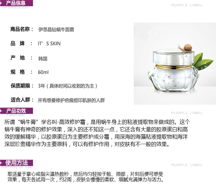 【韩国直邮】it's skin 伊思晶钻蜗牛面霜【一个身份证一个订单】