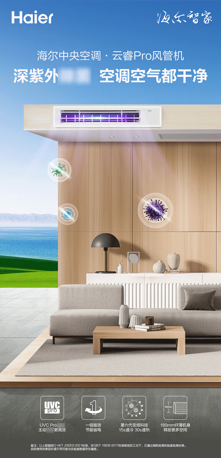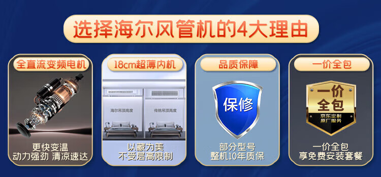 【海尔KFRd-72NW 75EF81】海尔(Haier)风管机3匹一级能效中央空调云睿风管机一拖一嵌入式空调变频急速冷暖