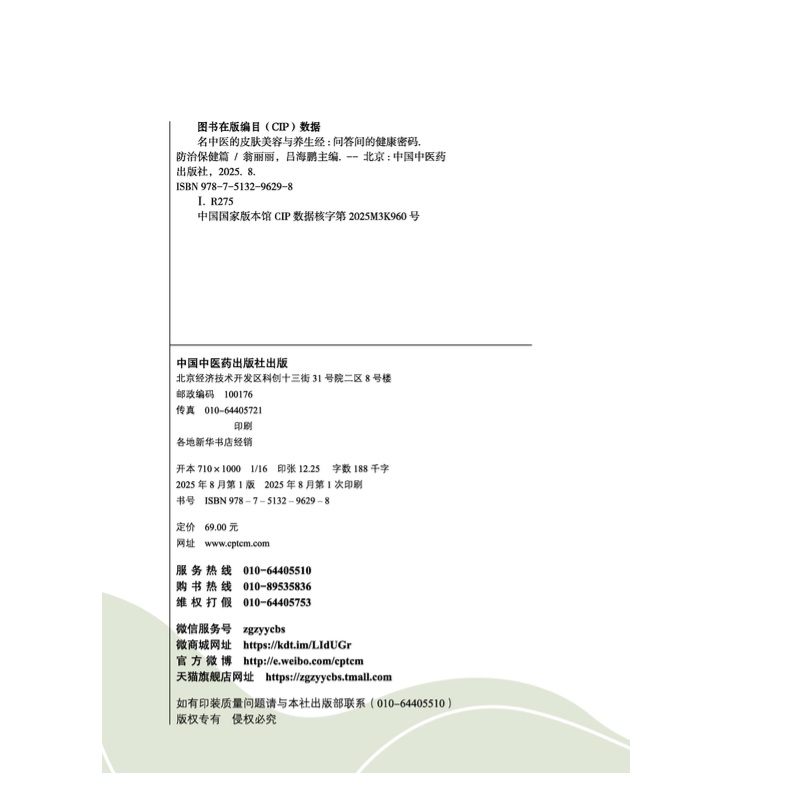 书名:名中医的皮肤美容与养生经 问答间的健康密码 防治保健篇