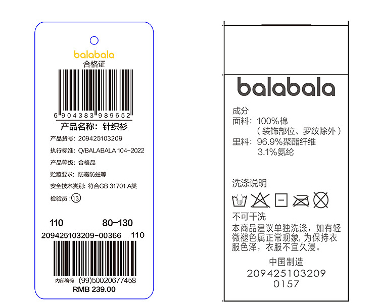 巴拉巴拉balaOne宝宝毛衣婴儿线衫男童2025新款冬装女童毛衫内搭