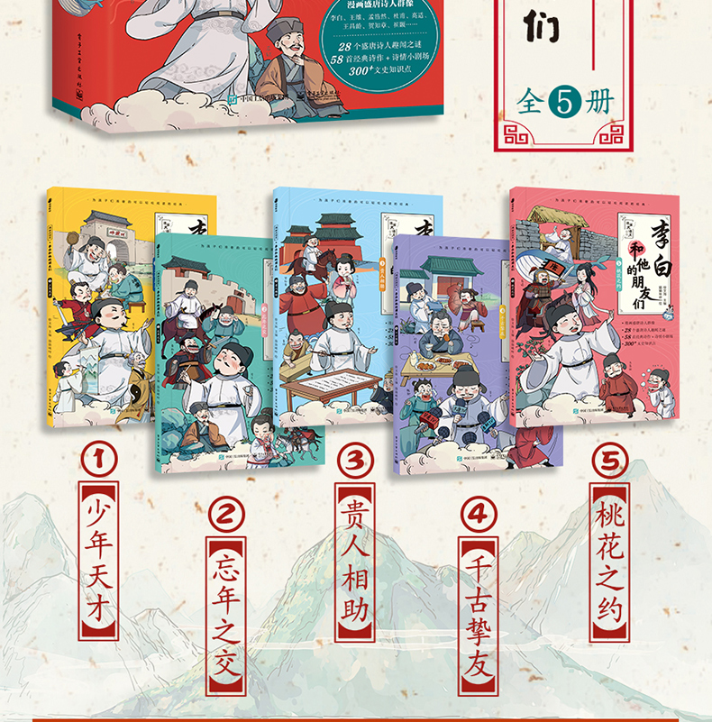 预售8.8 李白和他的朋友们正版全套5册 漫画大语文系列小学生课外阅读书籍三四至六五年级儿童课外书杜甫孟浩然王维朋友唐朝诗人的生平故事