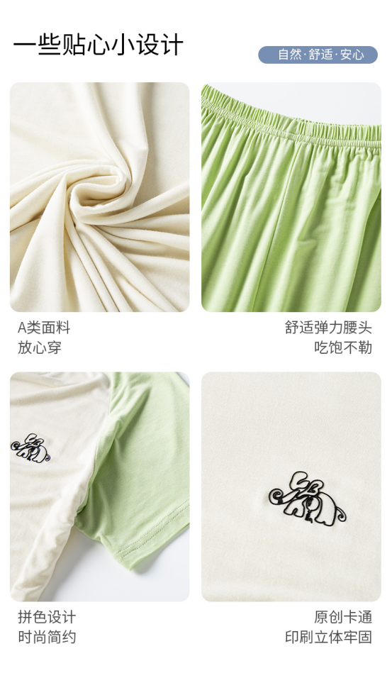 一套舒适又好穿的短袖套装真的很重要❗ 甄选莫代尔面料,亲肤舒适,透气不闷热 轻薄软糯干爽不粘肤,穿上就会爱上的款 注重品质的麻麻们千万不要错过~!