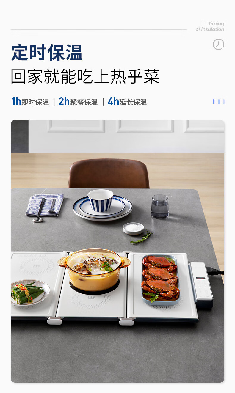 摩飞电器(Morphyrichards)三折叠暖菜板 饭菜保温板热菜板 加热桌垫菜板 独立电陶炉暖餐加烹煮 7档火力暖菜加热板 MR8301