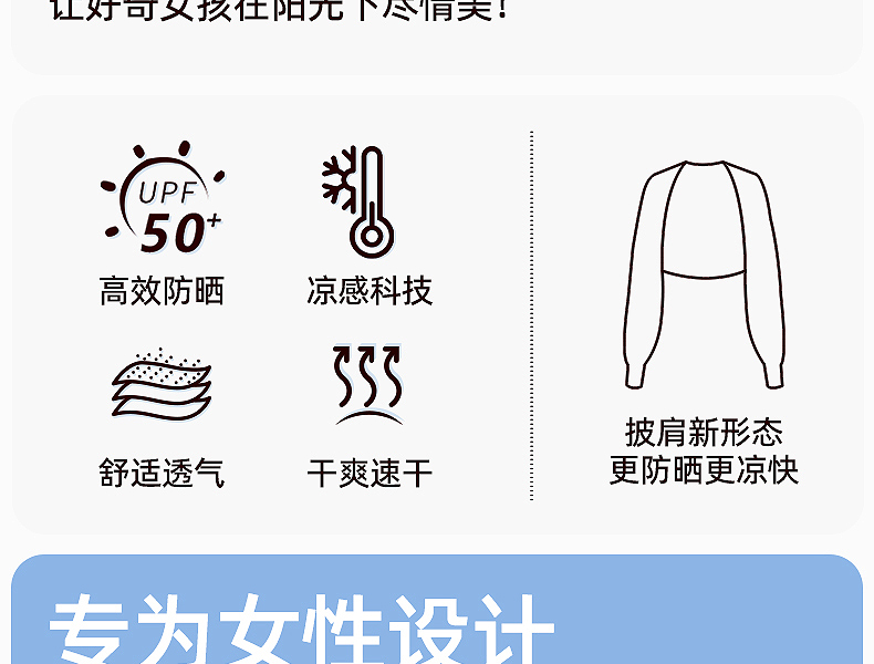 好奇蜜斯夏季简约百搭凉感防晒坎肩空调衫长袖外套上衣短款开衫女-伊蕾娜