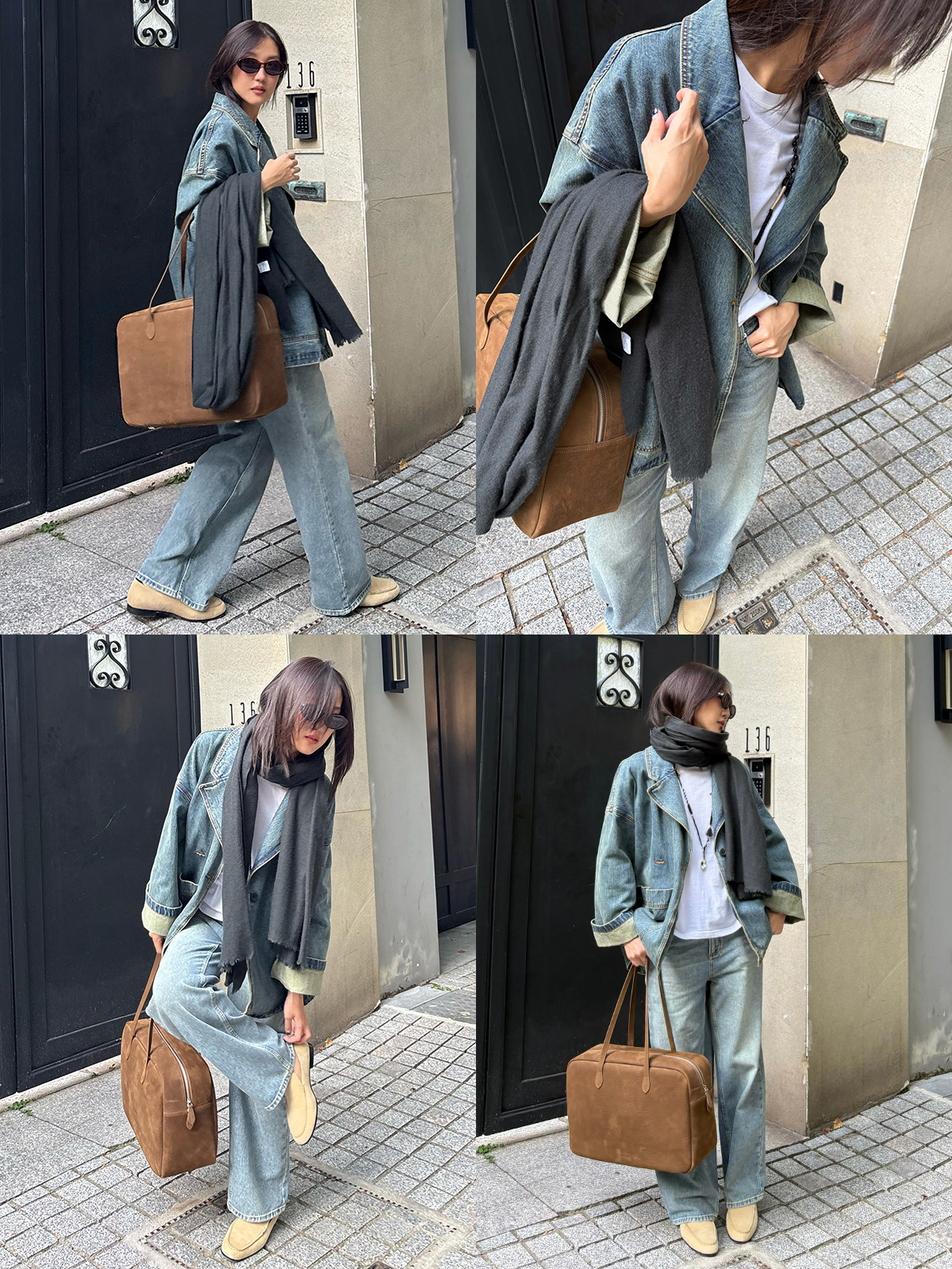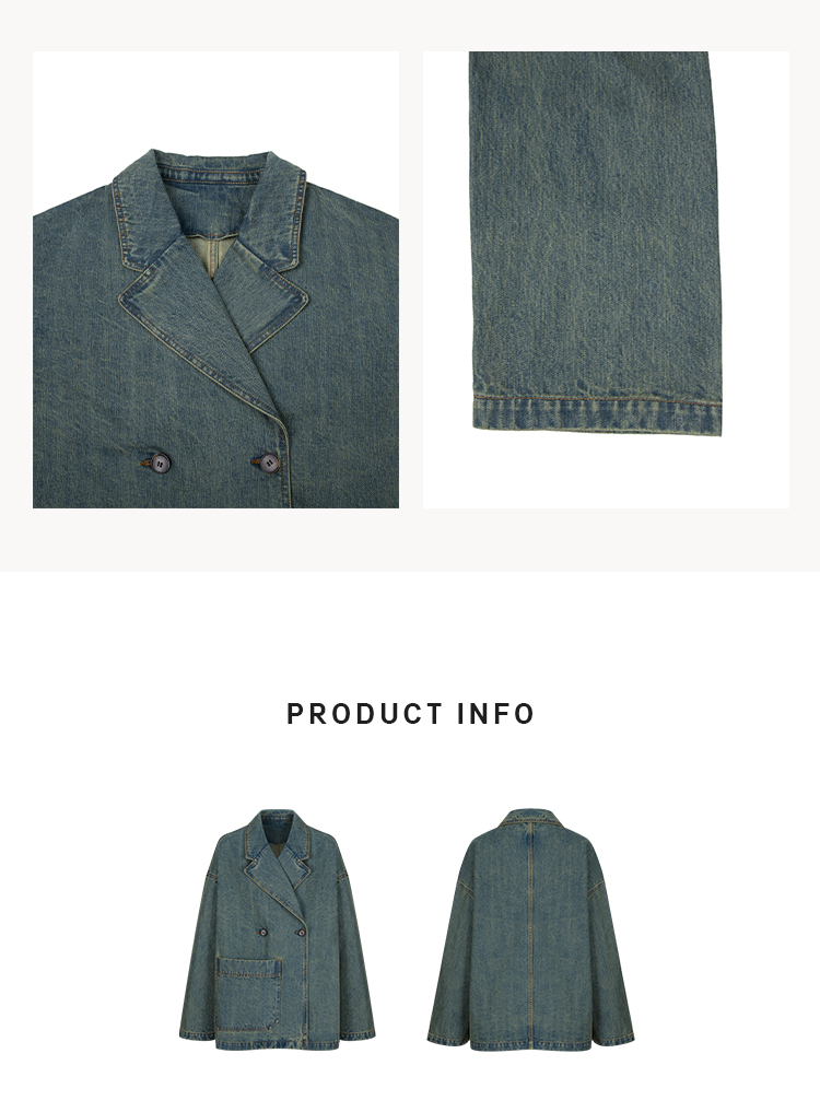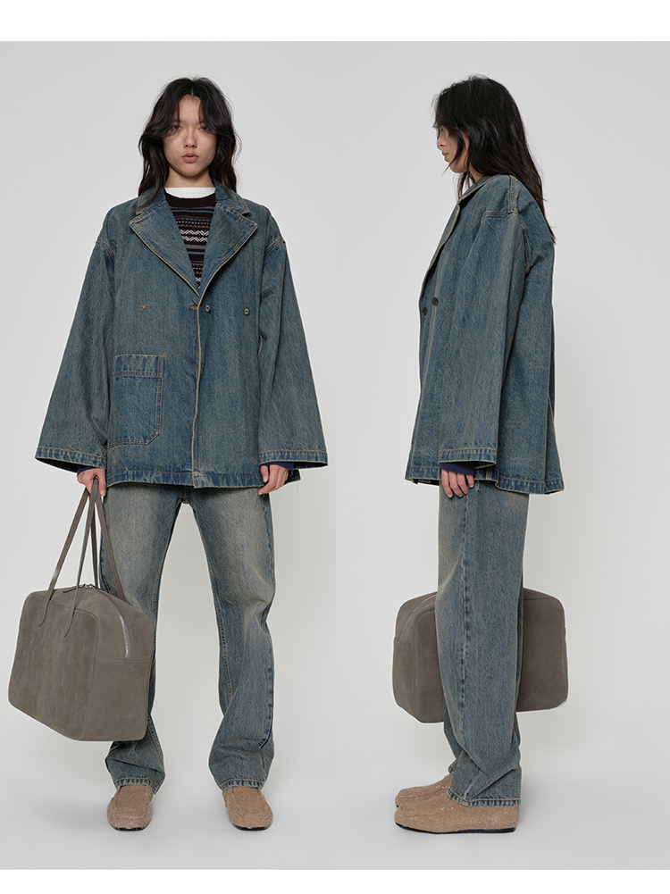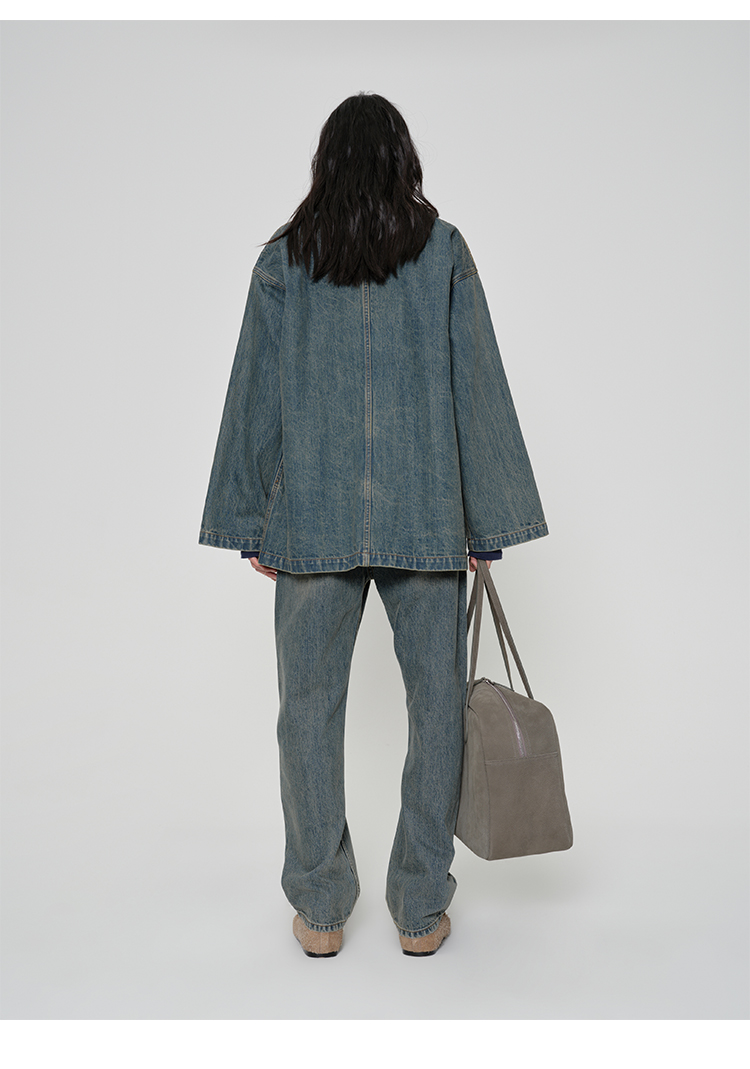 HIDEMI 多重水洗做旧感极简大廓形翻领口袋式纽扣西装大衣外套
