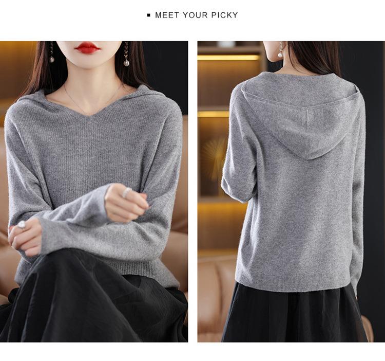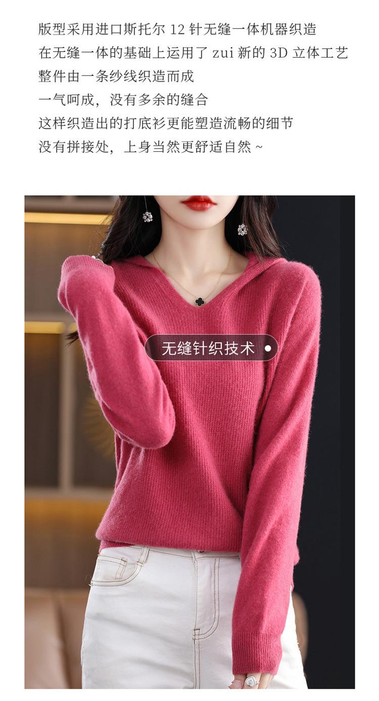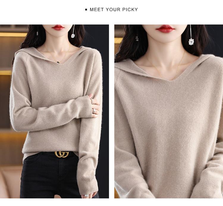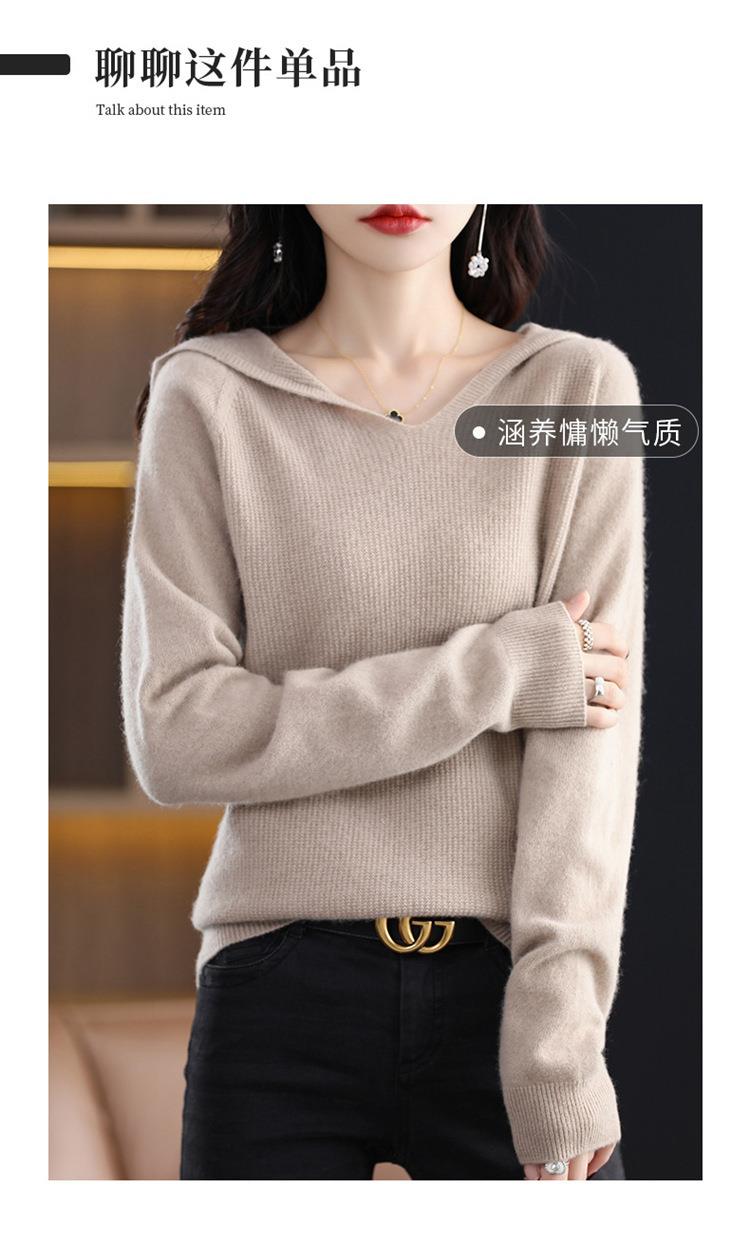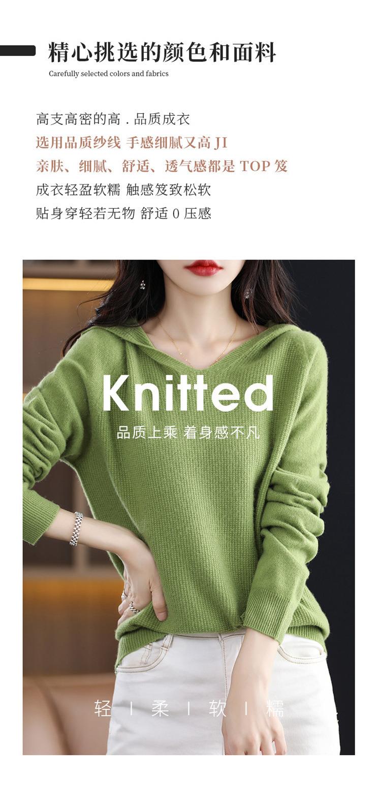 无缝一线成衣连帽长袖针织衫女士套头韩版宽松休闲外搭毛衣