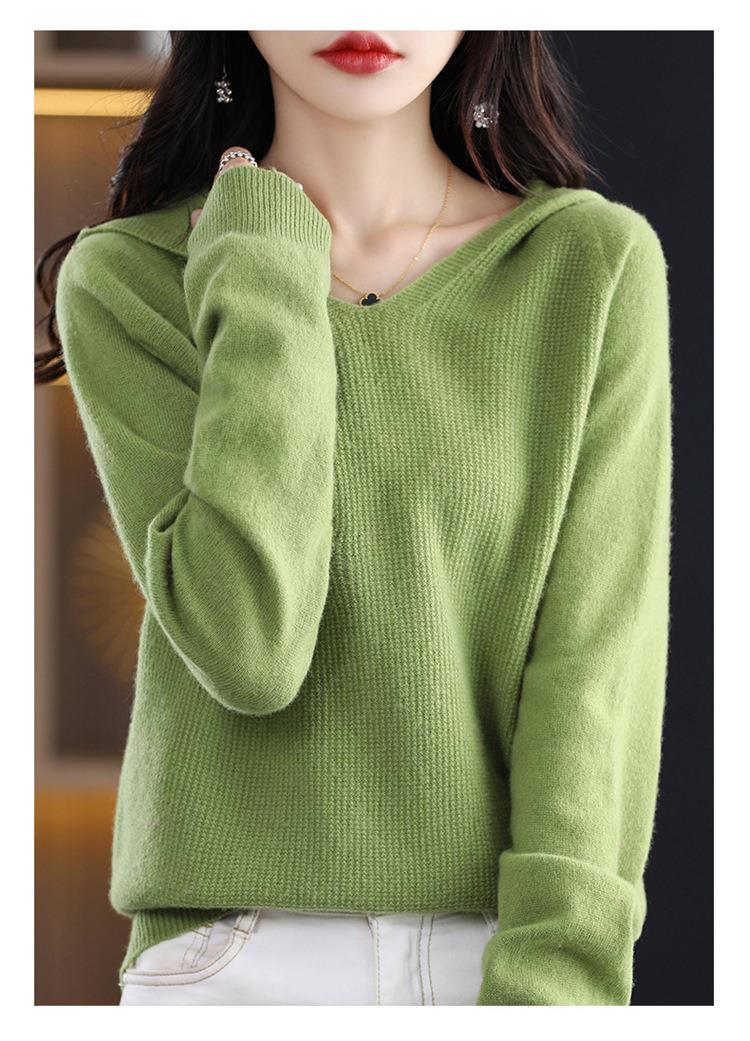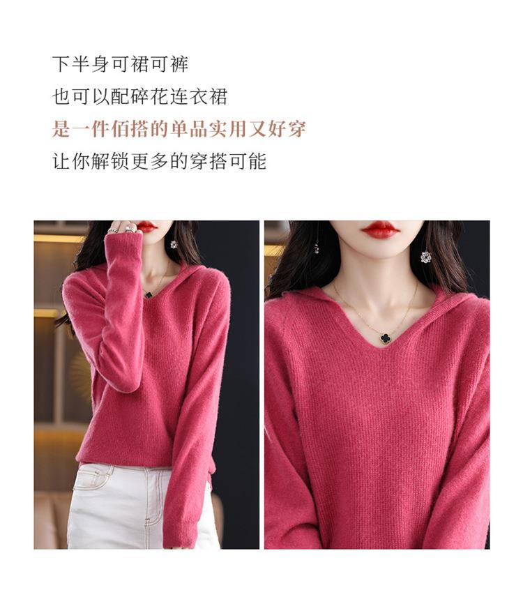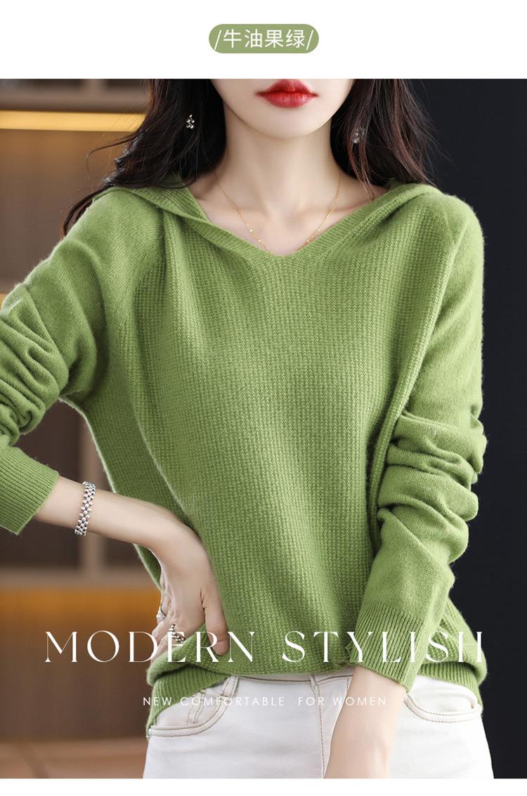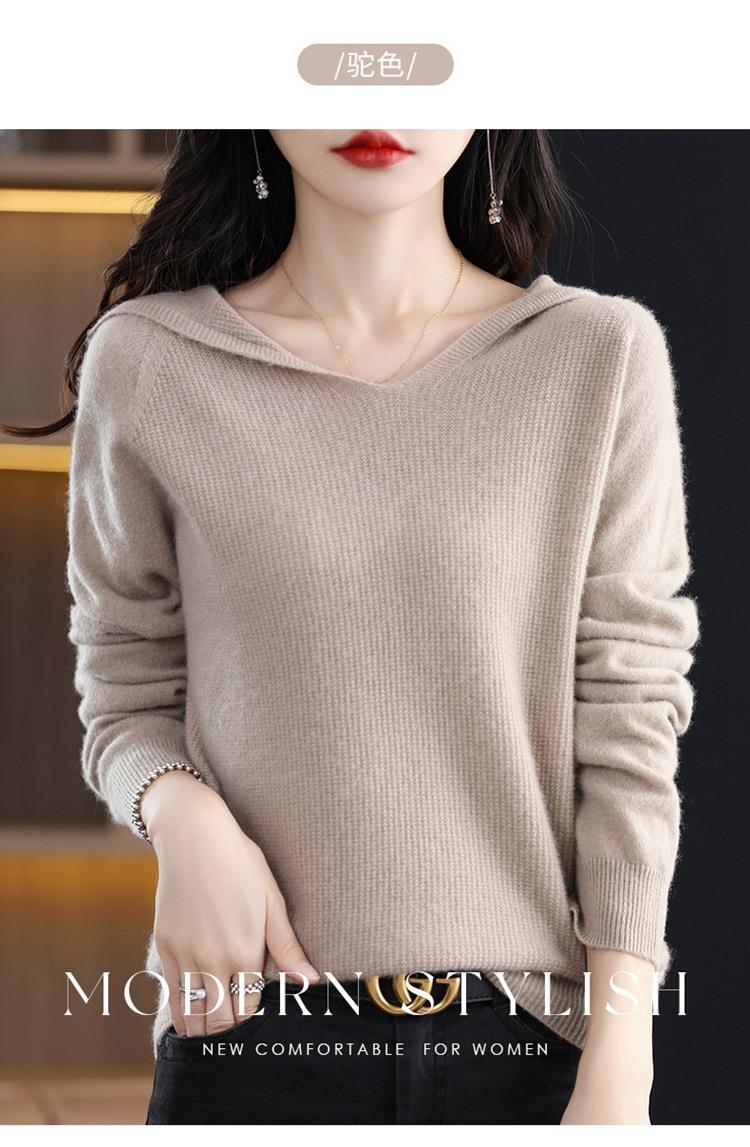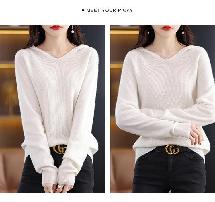无缝一线成衣连帽长袖针织衫女士套头韩版宽松休闲外搭毛衣
