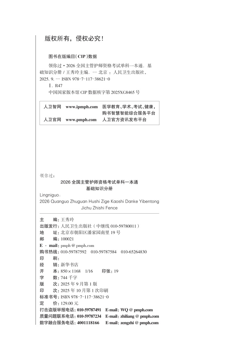 书名:领你过:2026全国主管护师资格考试单科一本通 基础知识分册