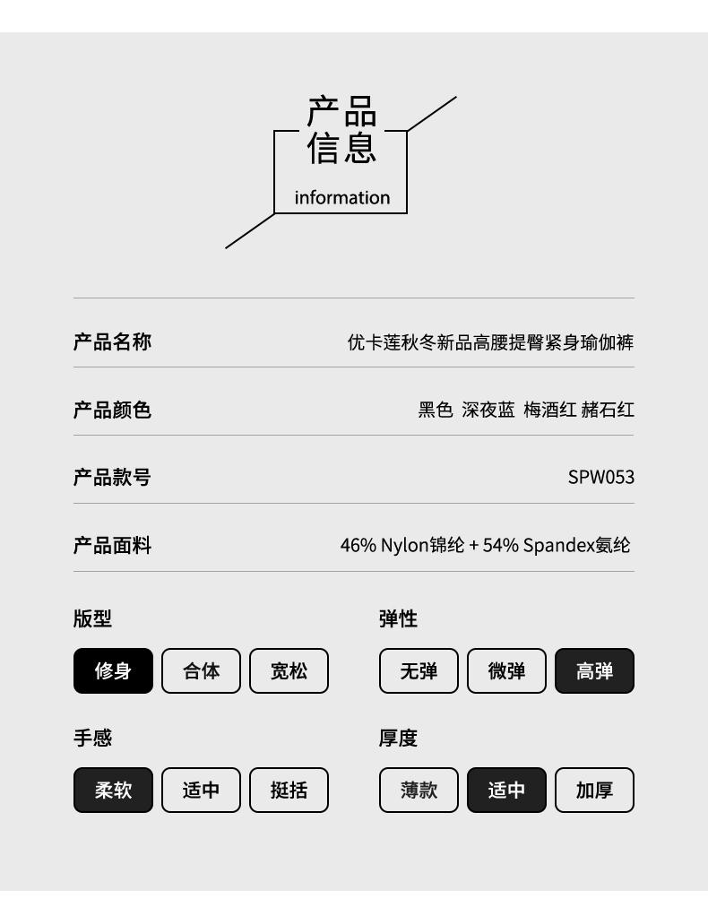 优卡莲秋冬新品高腰提臀外穿运动紧身瑜伽裤蜜桃臀细腰显瘦SPW053