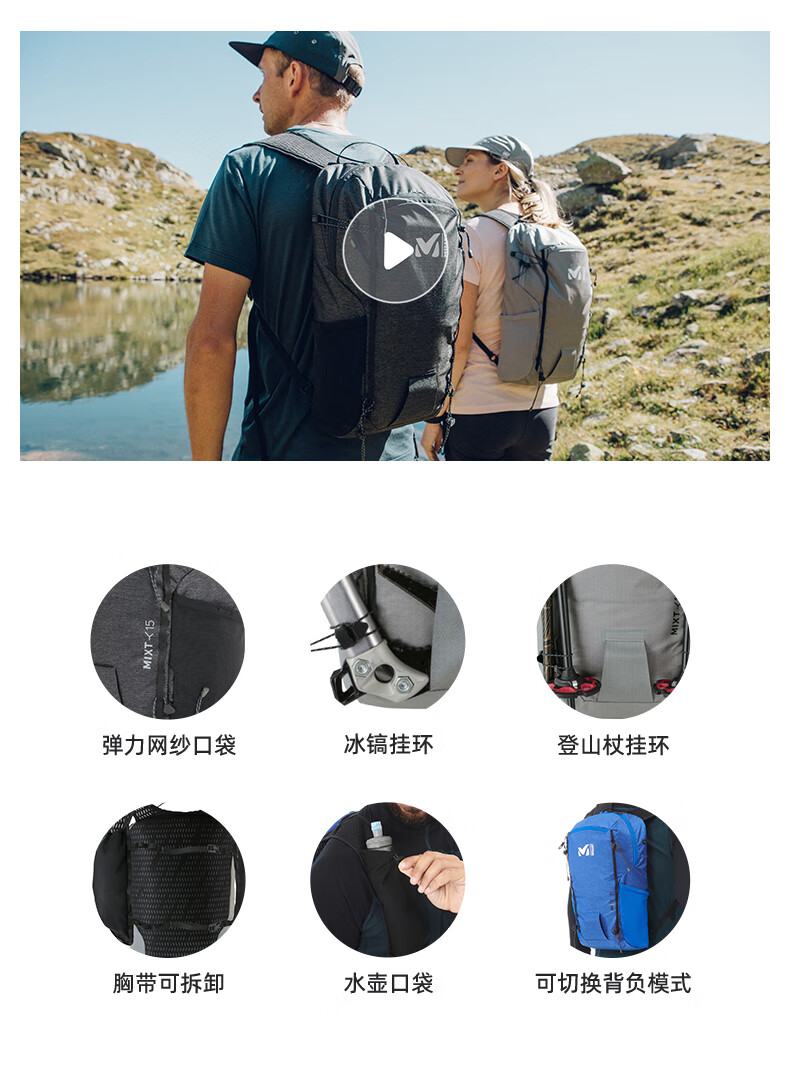 【实体店现货】MILLET觅乐 攀岩徒步城市休闲背包15L 16L 20L 25L