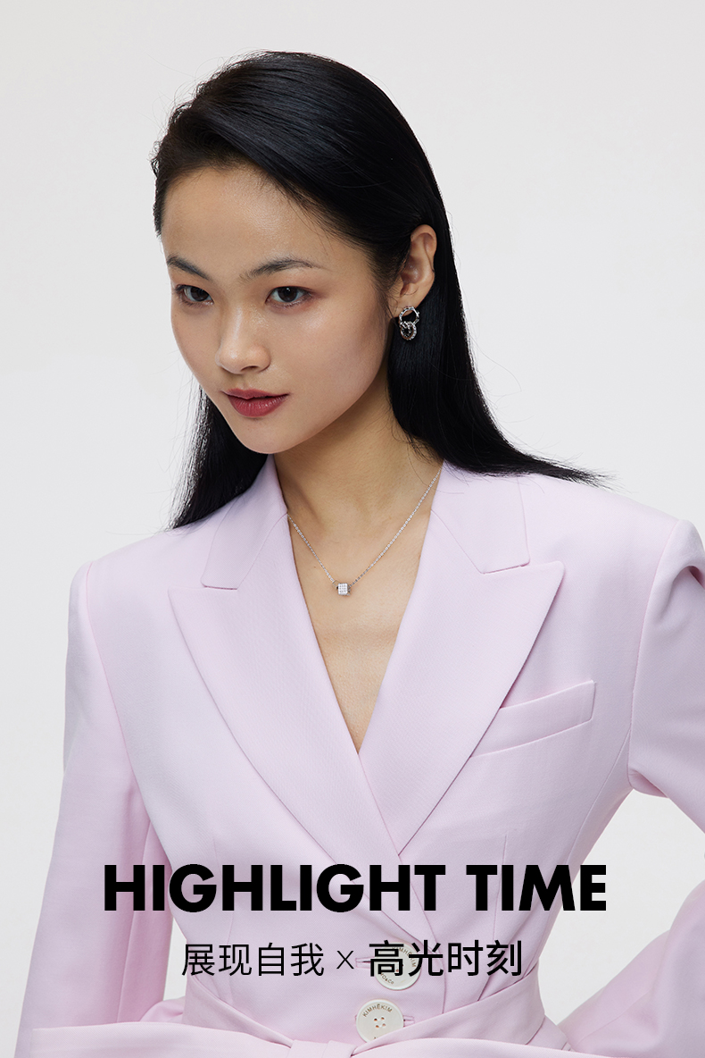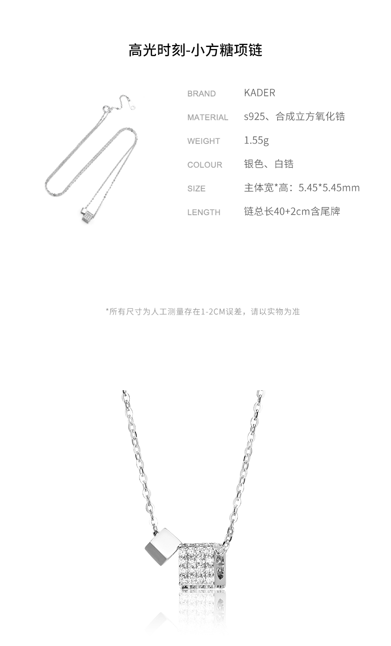 KADER卡蒂罗 闪耀方块小方糖项链 S925银镶嵌宝石吊坠 小众时尚设计锁骨链 女款 礼物