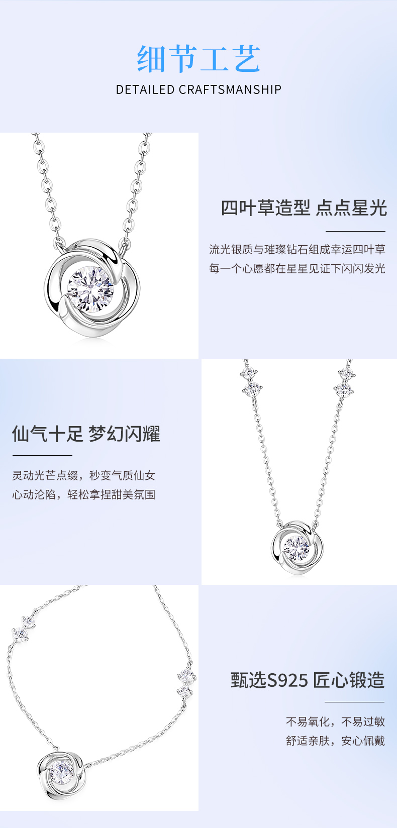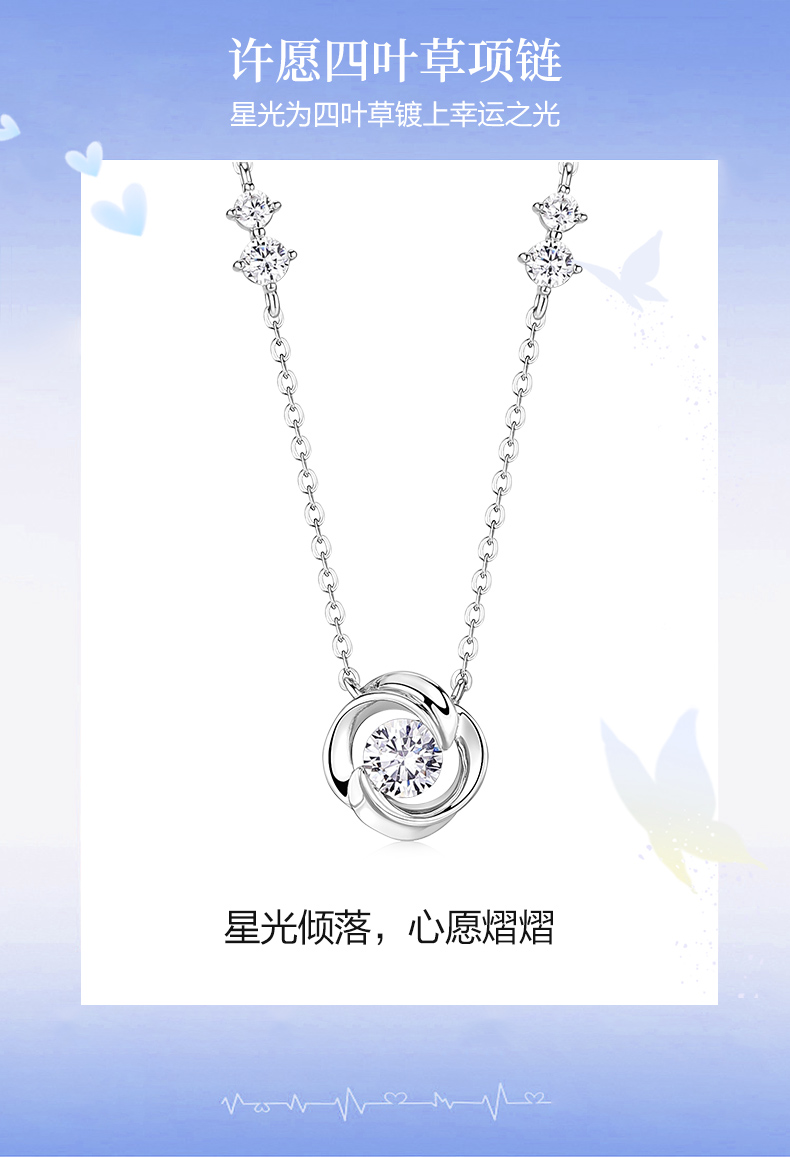 卡蒂罗/KADER 许愿四叶草项链 莫比乌斯环幸运四叶草跳动的心吊坠 轻奢小众设计感锁骨链简约时尚 925银