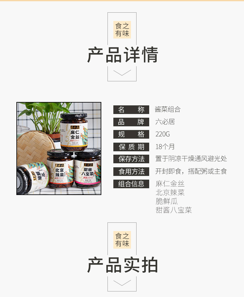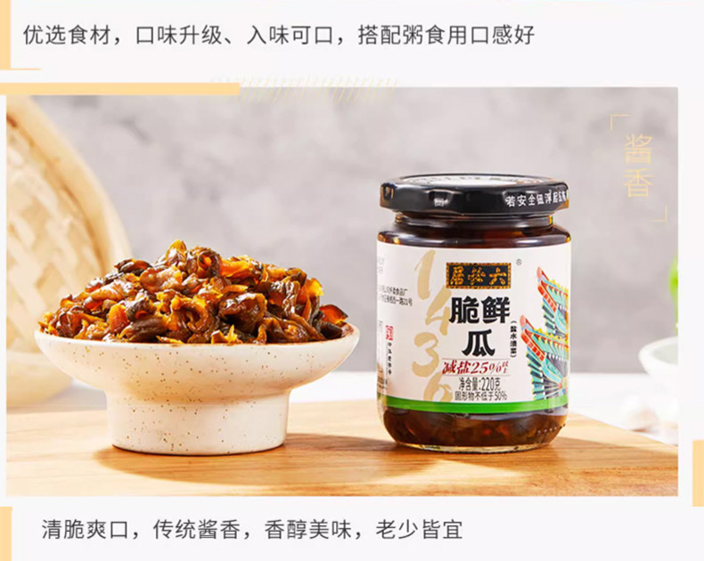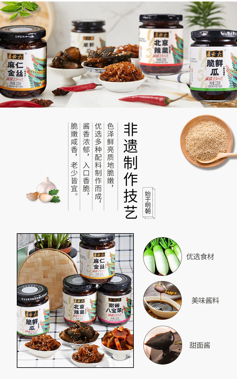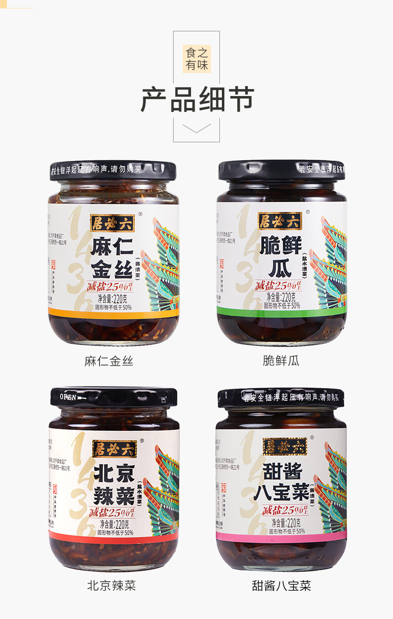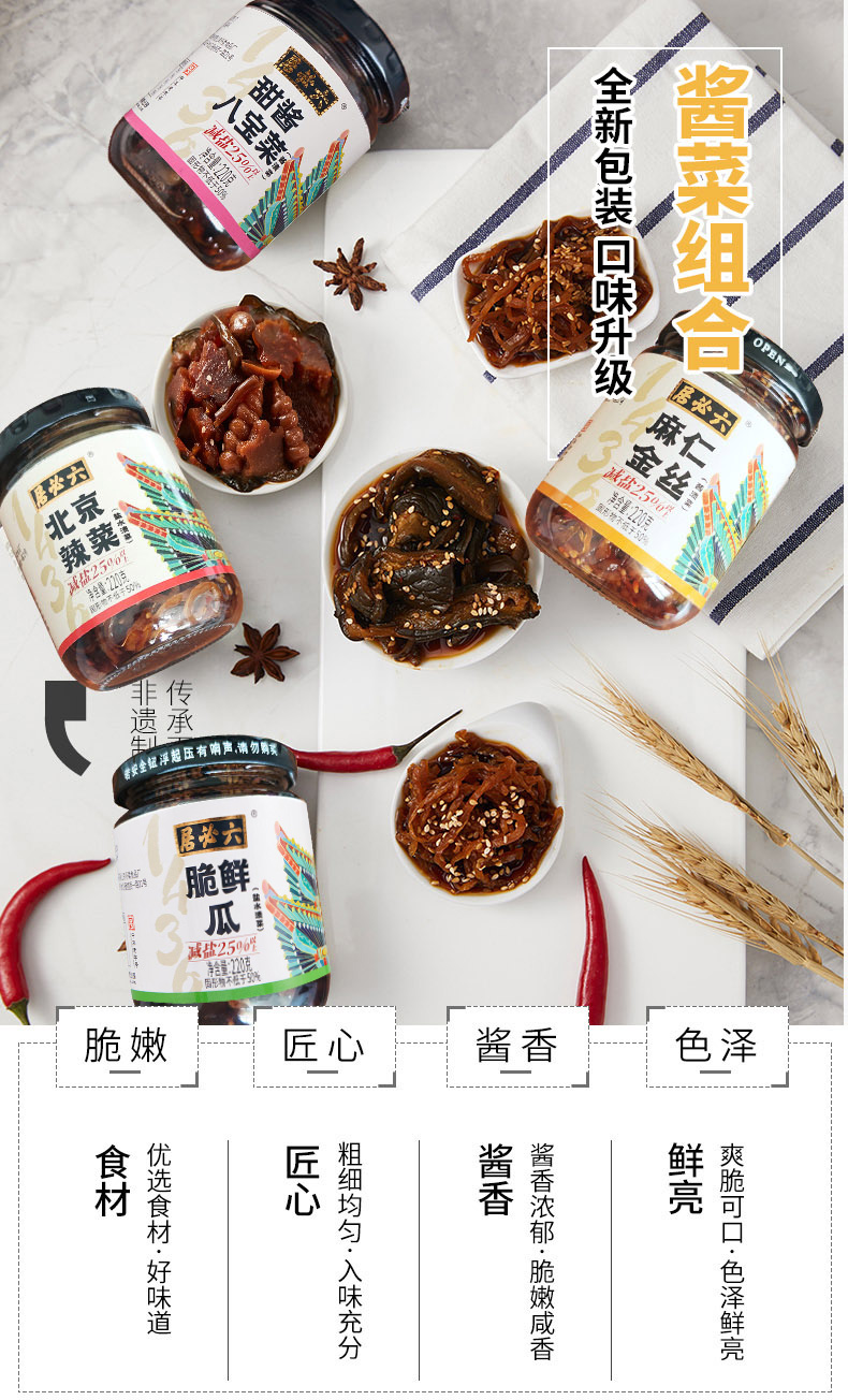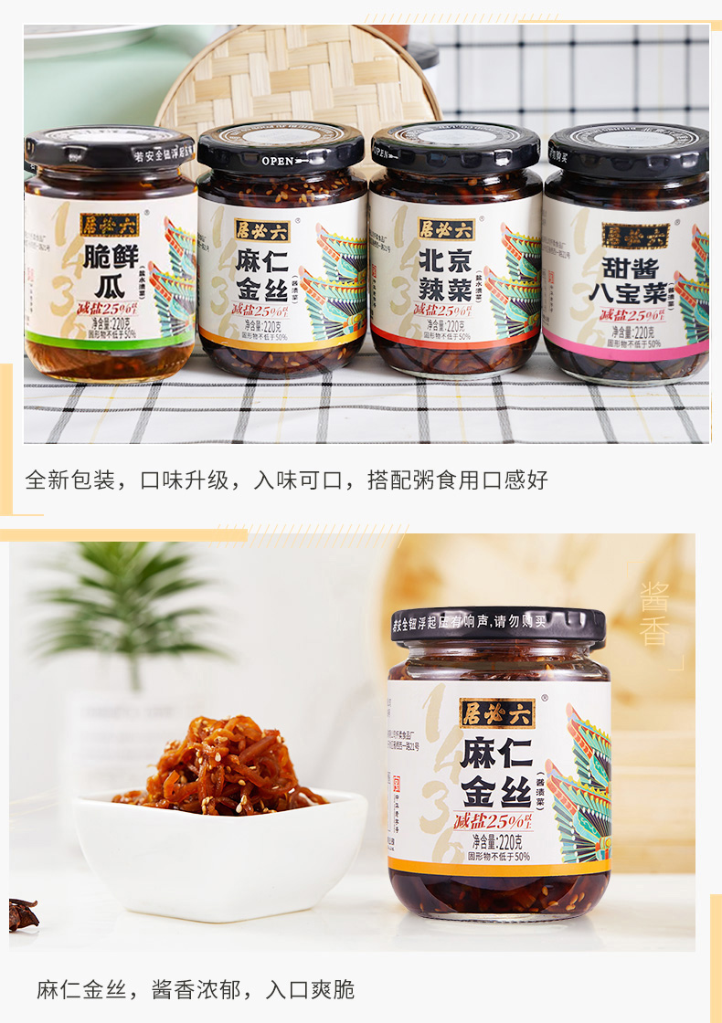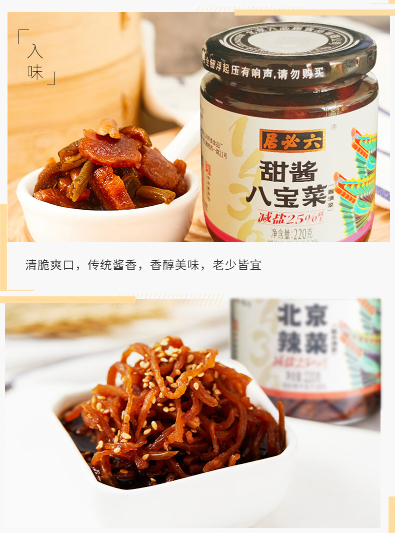 【首农】【六必居】麻仁金丝+脆鲜瓜+北京辣菜+甜酱八宝菜 酱菜组合