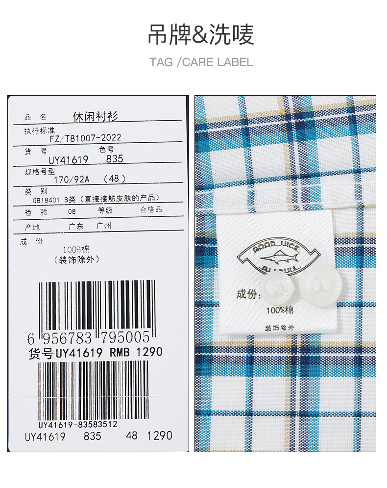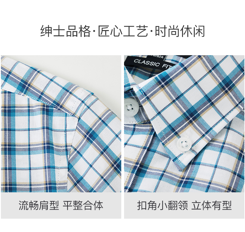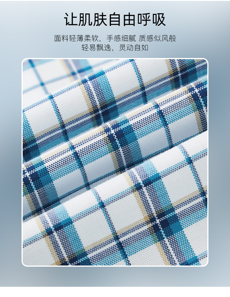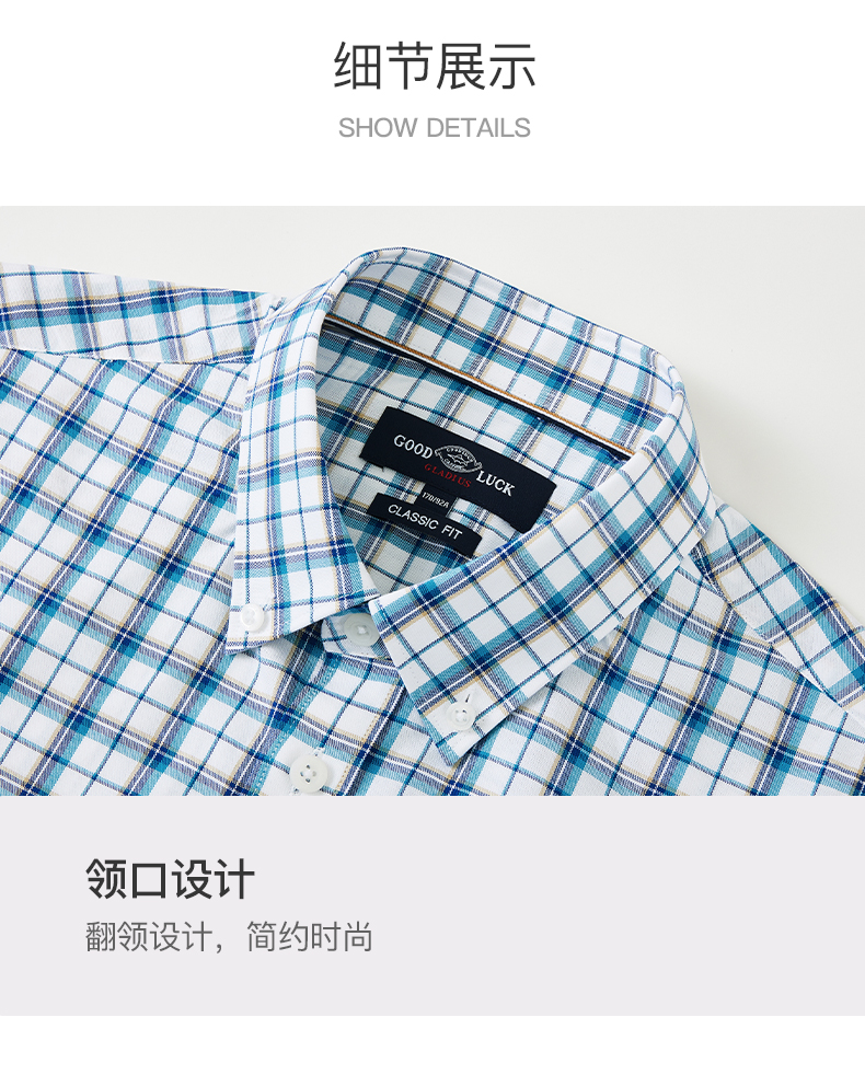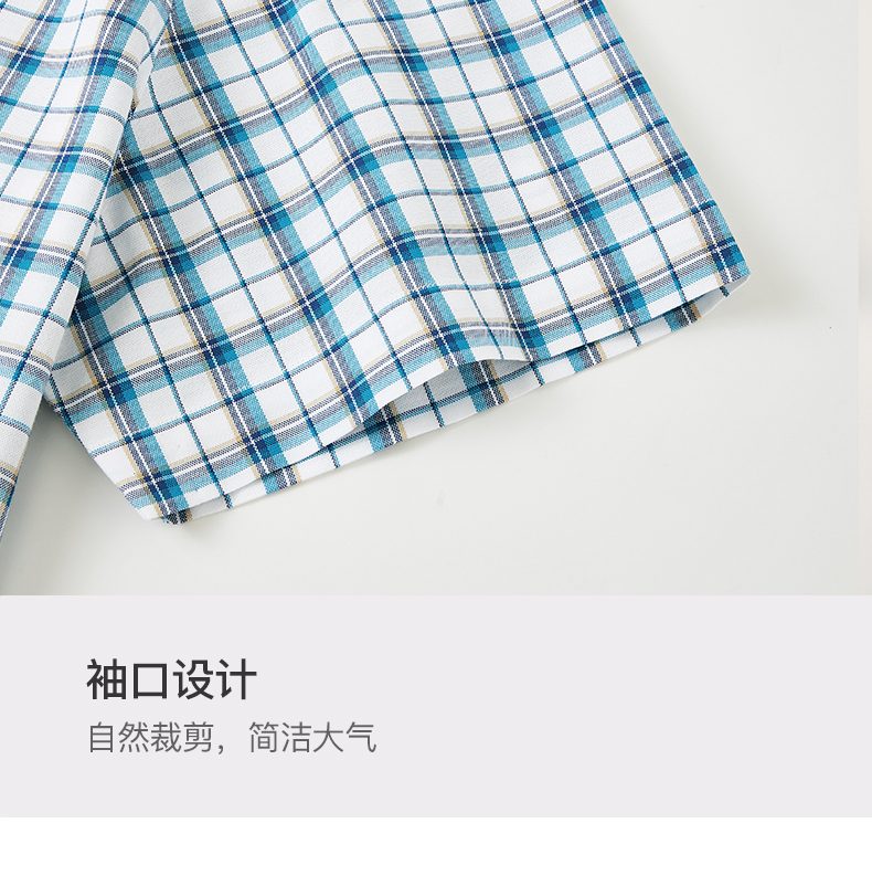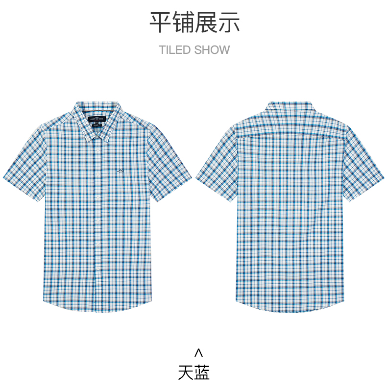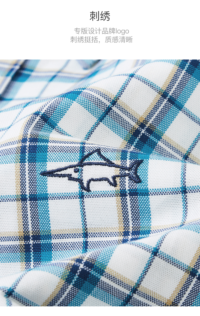 【纯棉】德鲨鲨鱼男装短袖衬衫2026夏季新款休闲格子衬衣