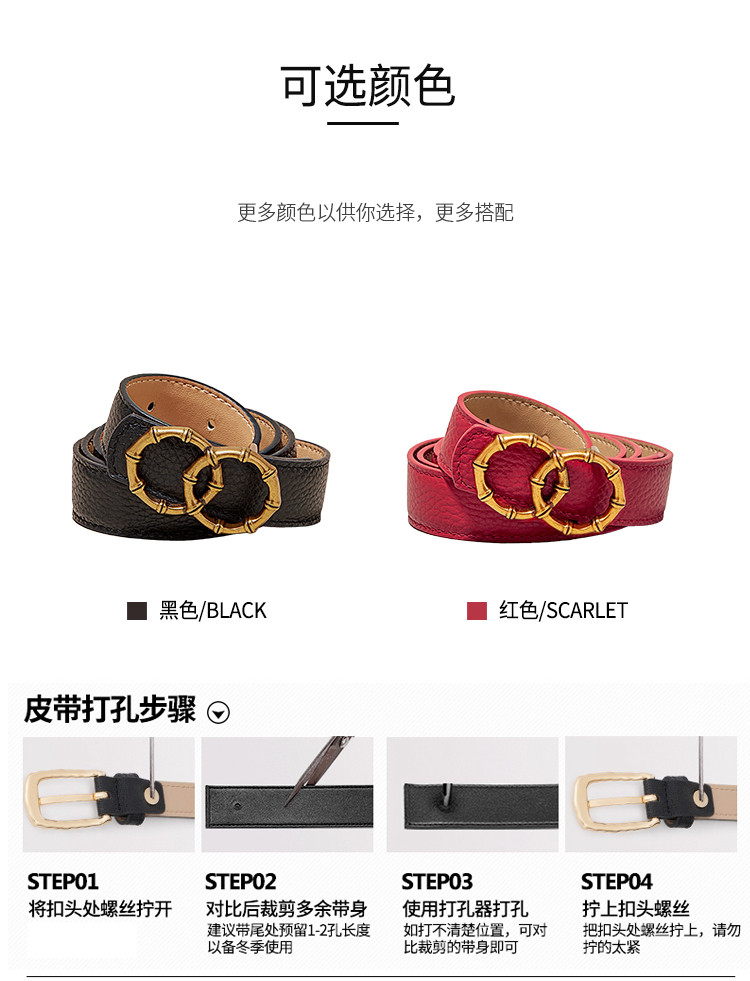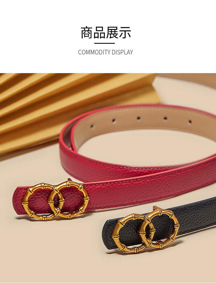 Safiya/索菲娅 2023新款皮带女牛皮复古圆扣细皮装饰牛仔裤腰带SF505009Y