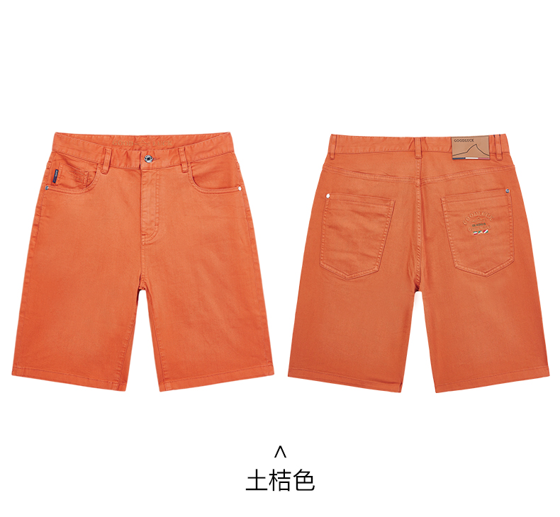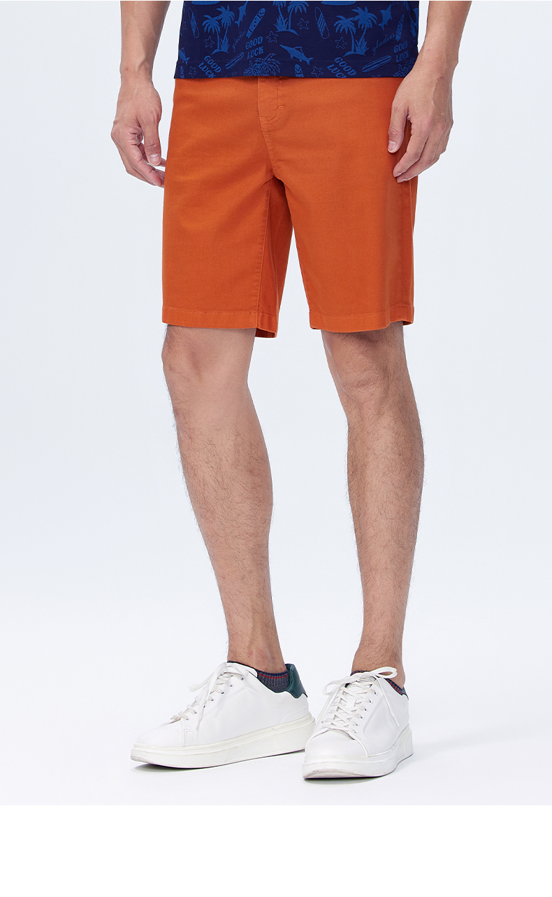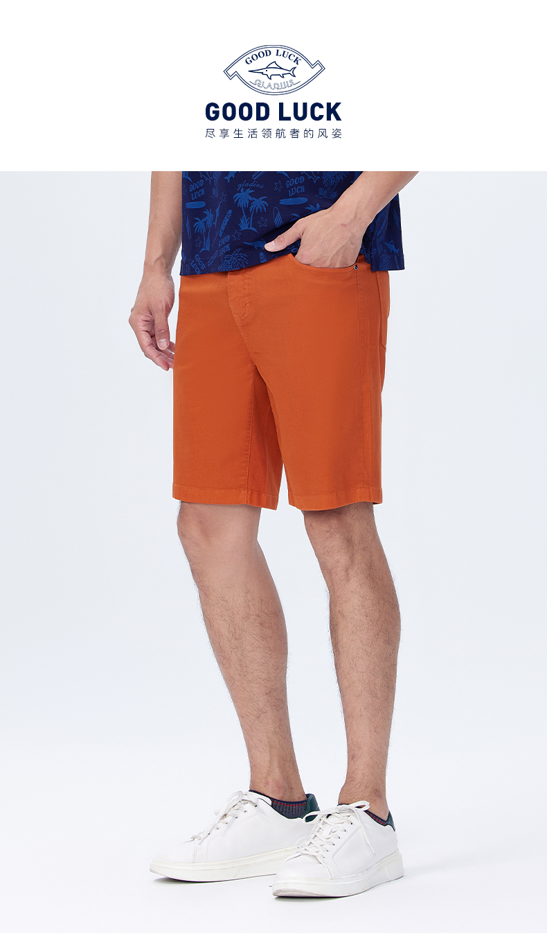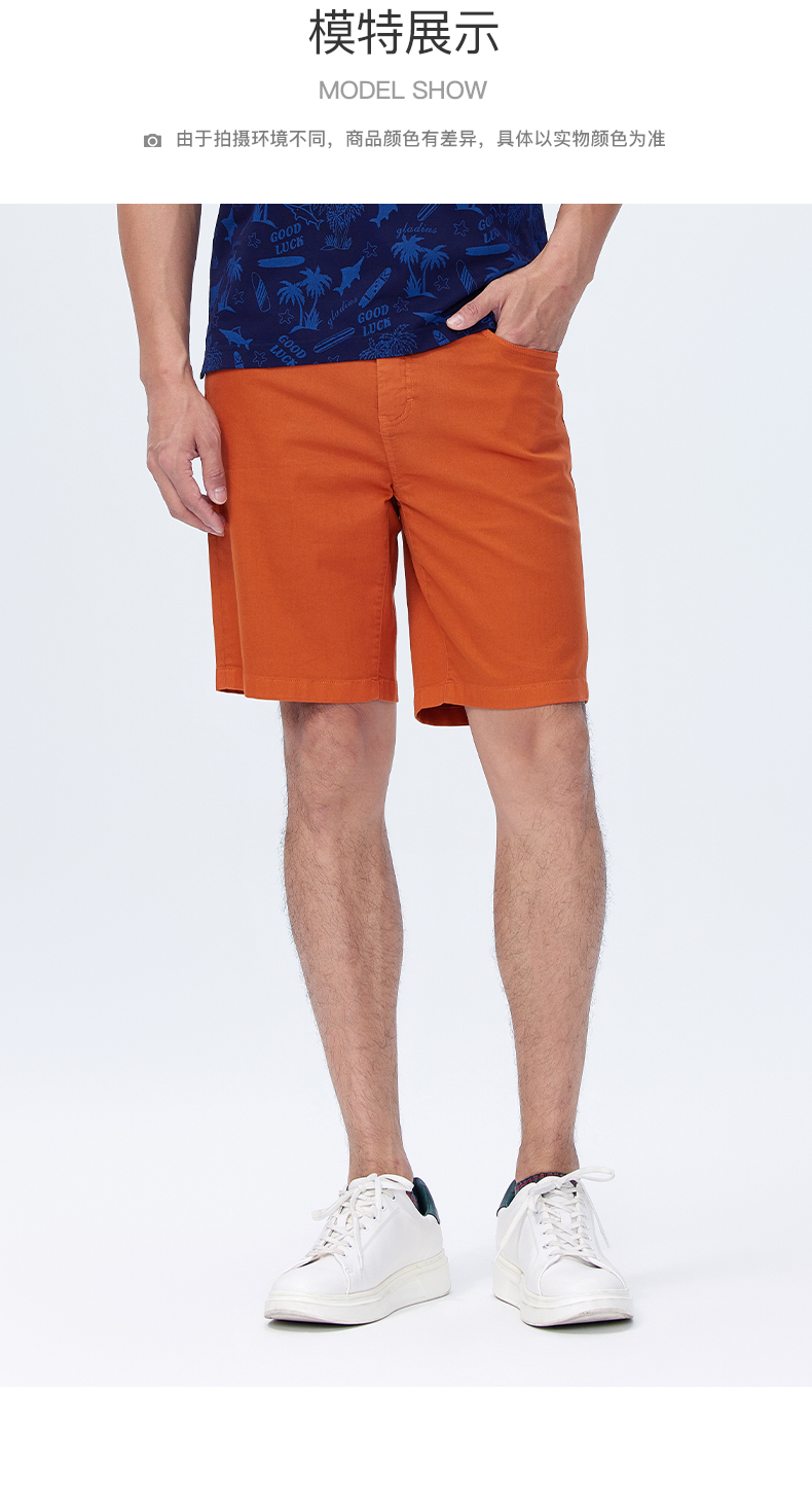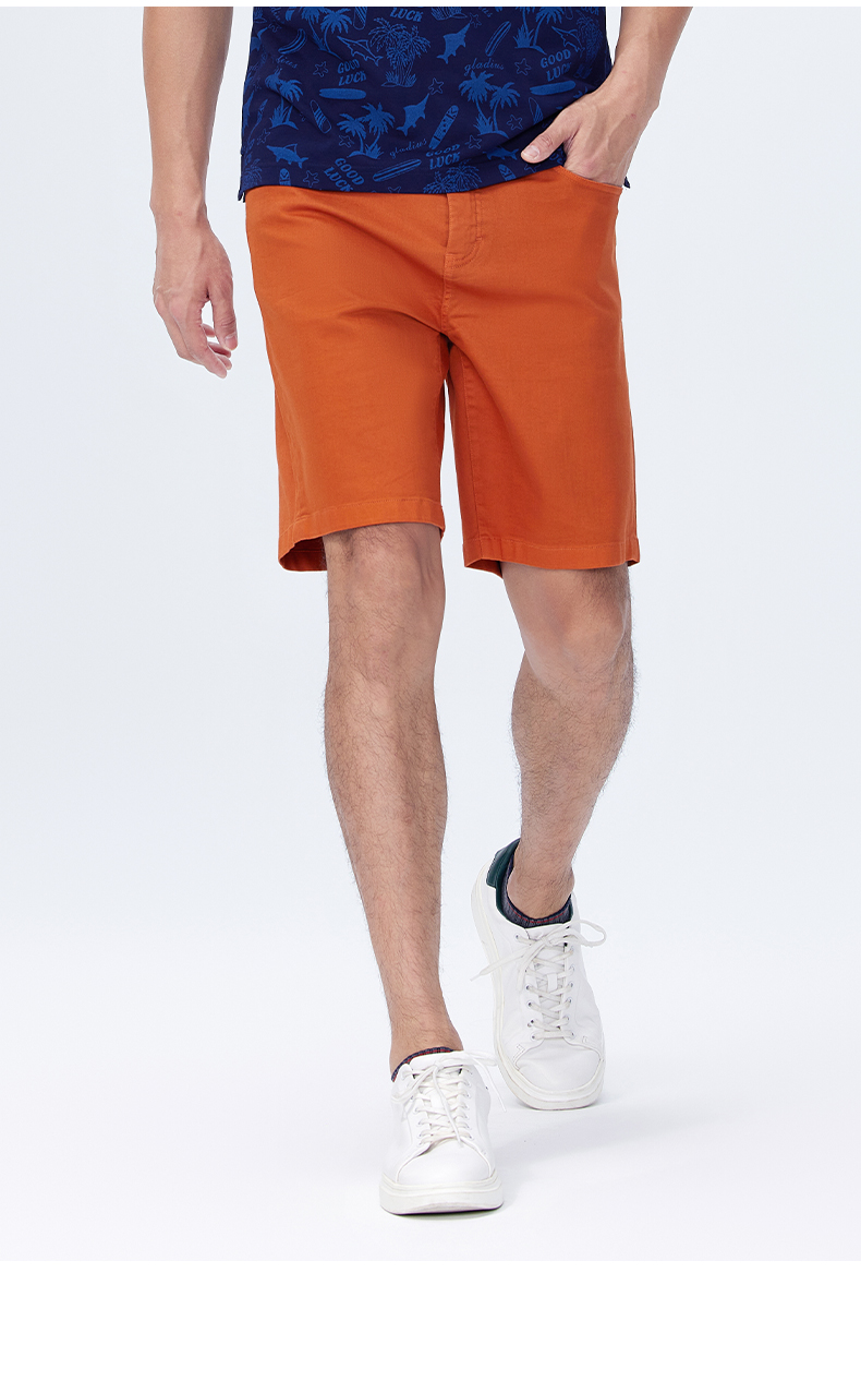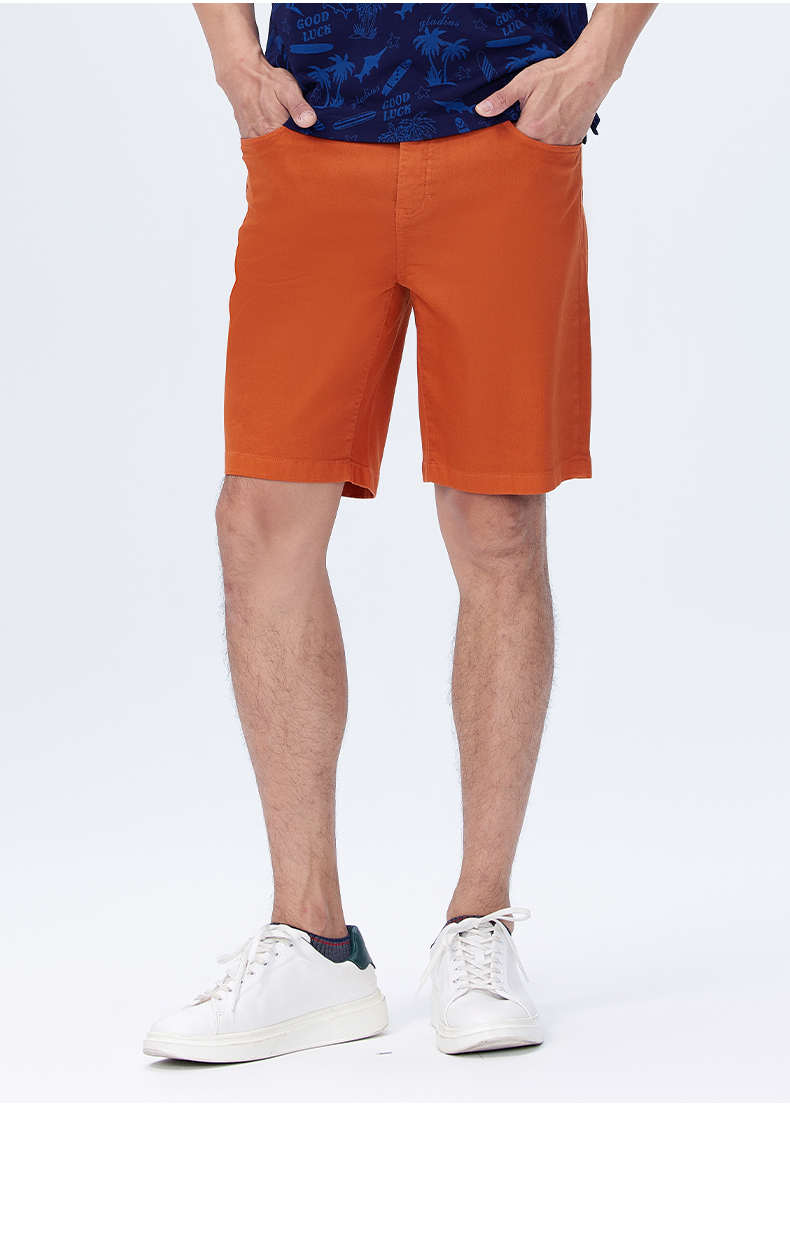 【天丝】德鲨夏新款桔色休闲短裤男时尚直筒中裤五分裤子