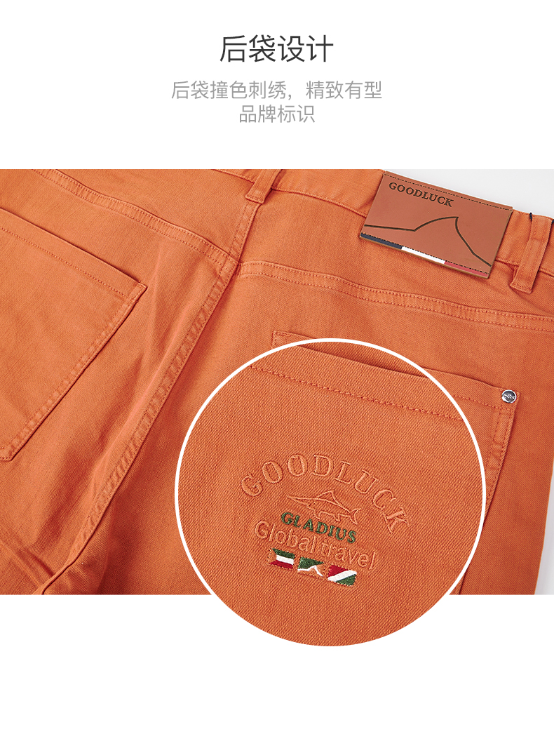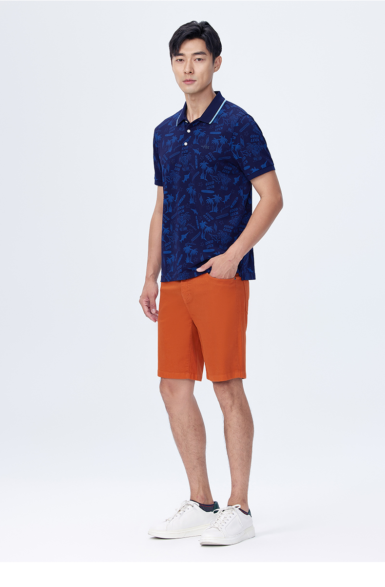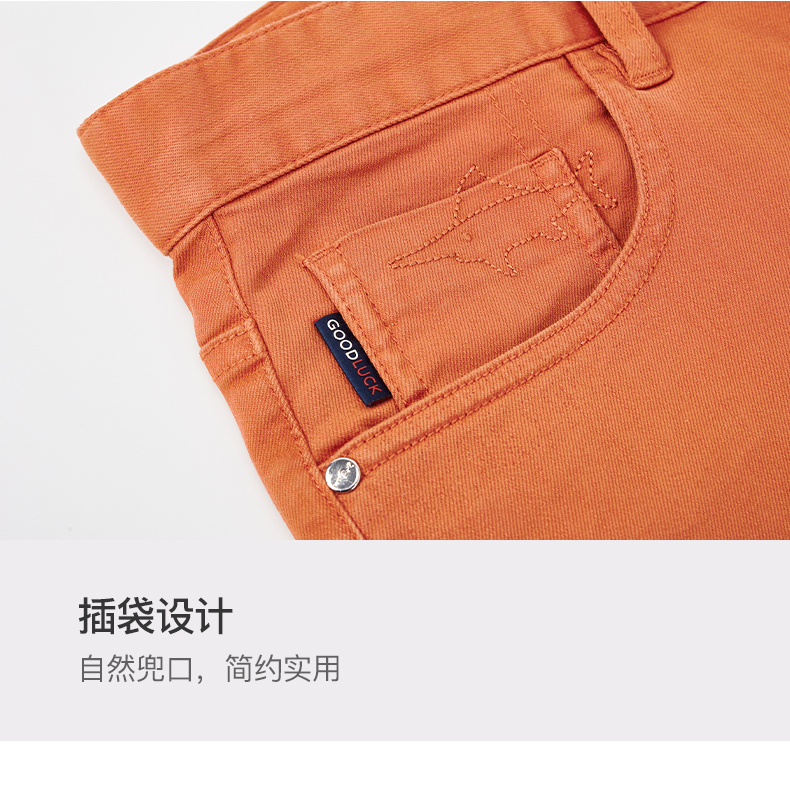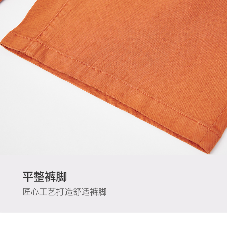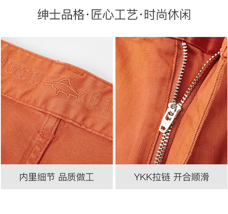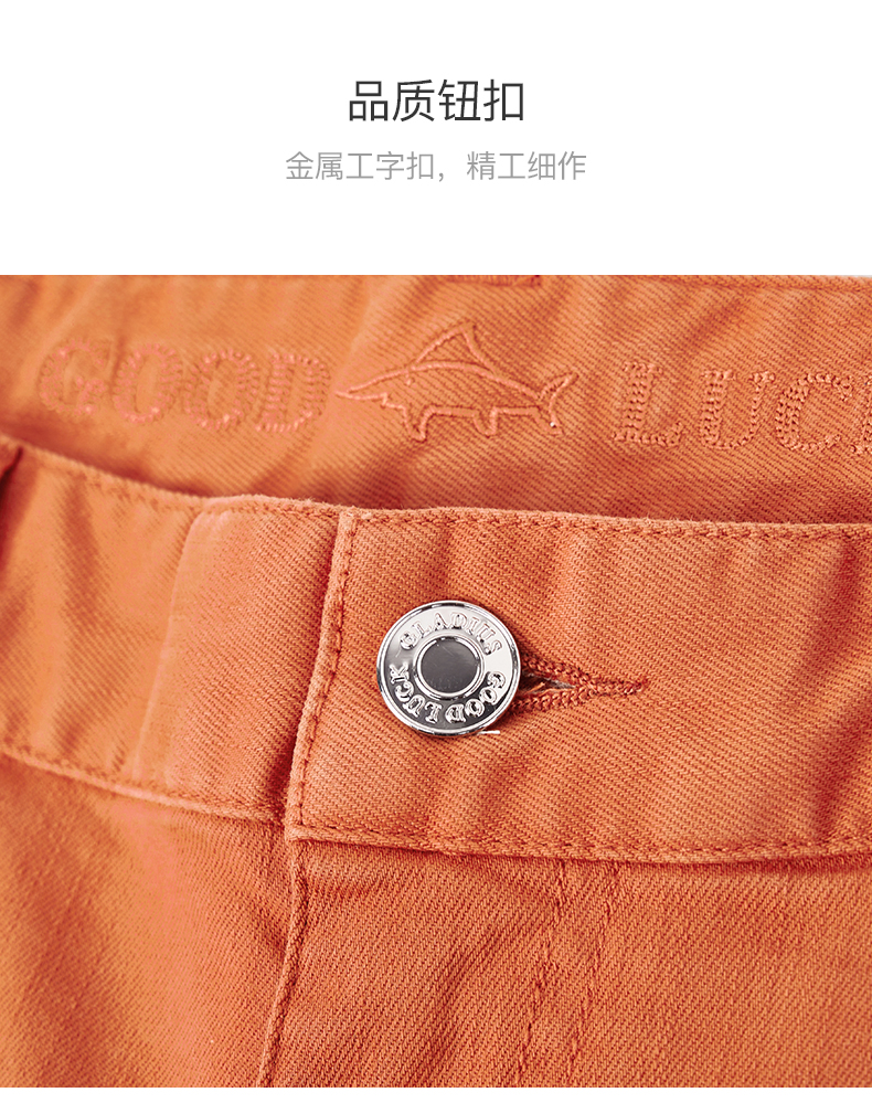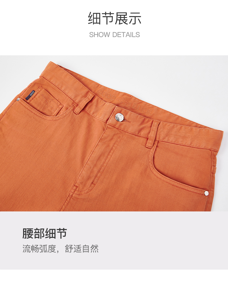 【天丝】德鲨夏新款桔色休闲短裤男时尚直筒中裤五分裤子
