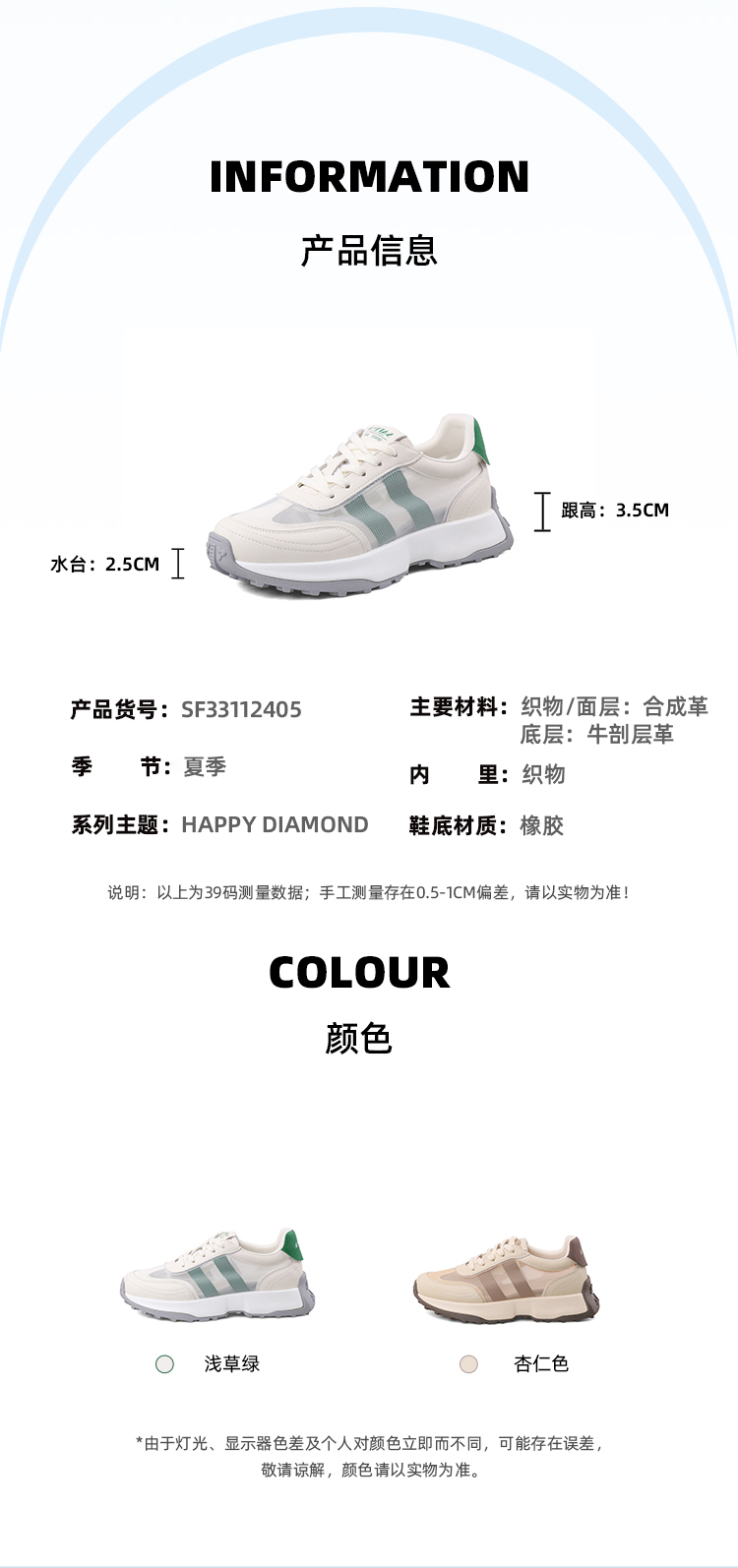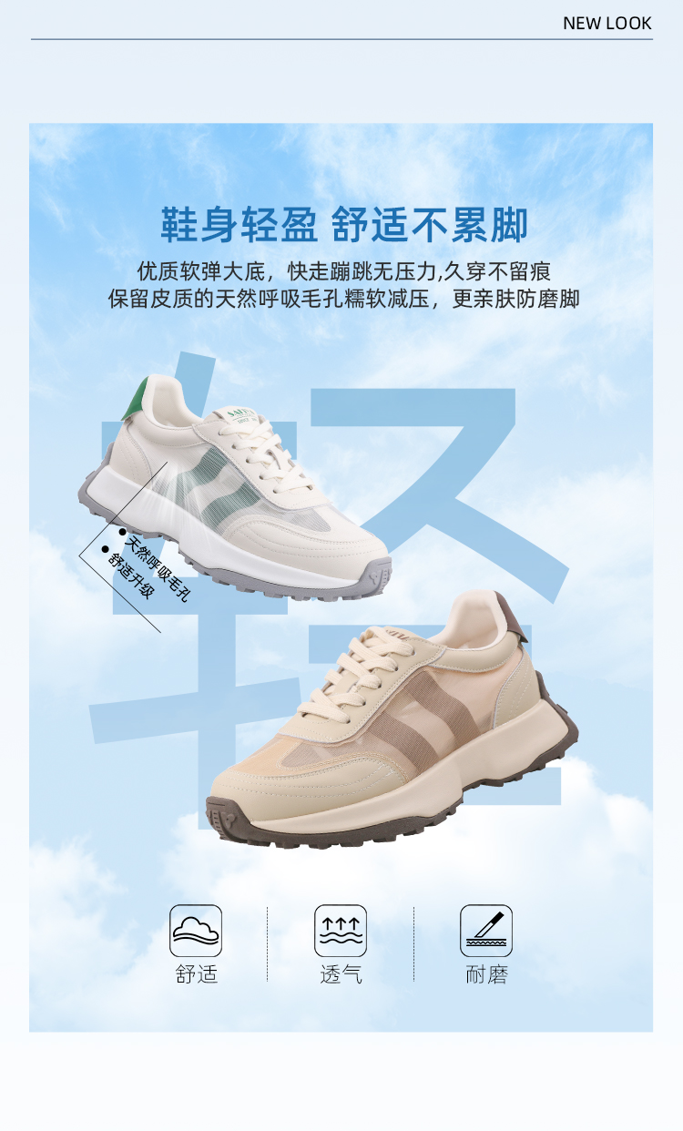 Safiya/索菲娅2023新品新潮厚底拼色网面透气阿甘运动休闲鞋 SF33112405