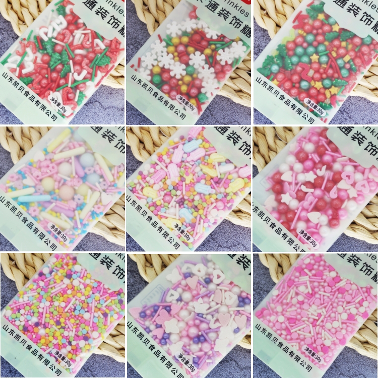 30g 凯贝卡通装饰糖 蛋糕甜甜圈冰淇淋装饰糖珠 圣诞树星星雪花爱心彩针等