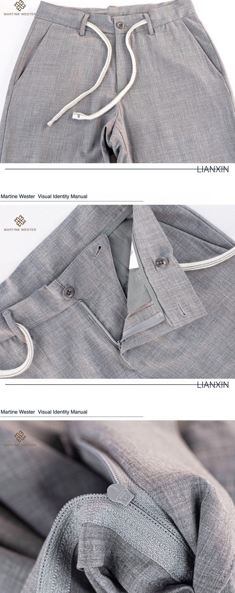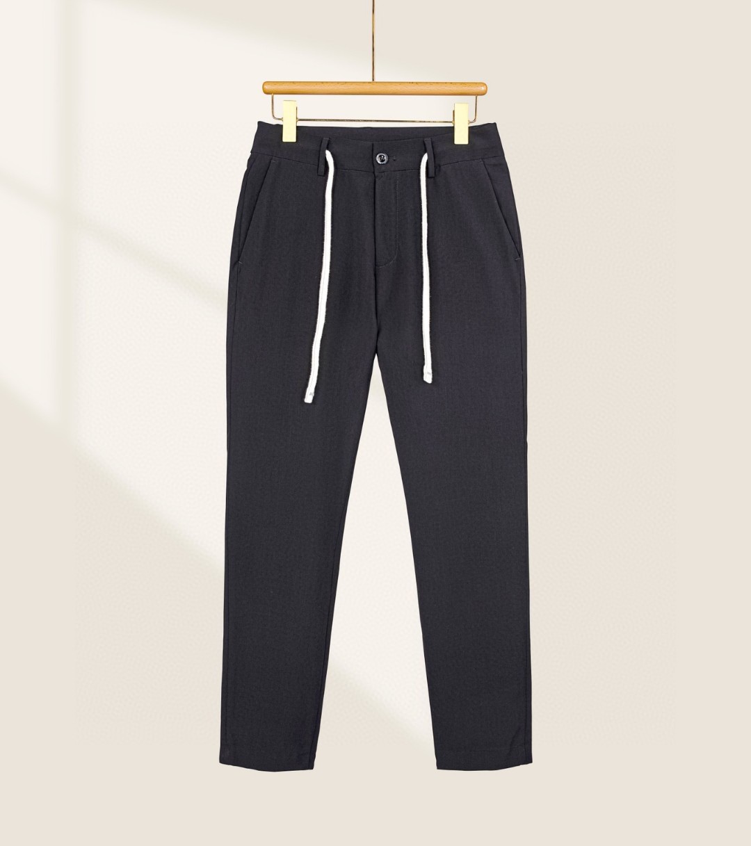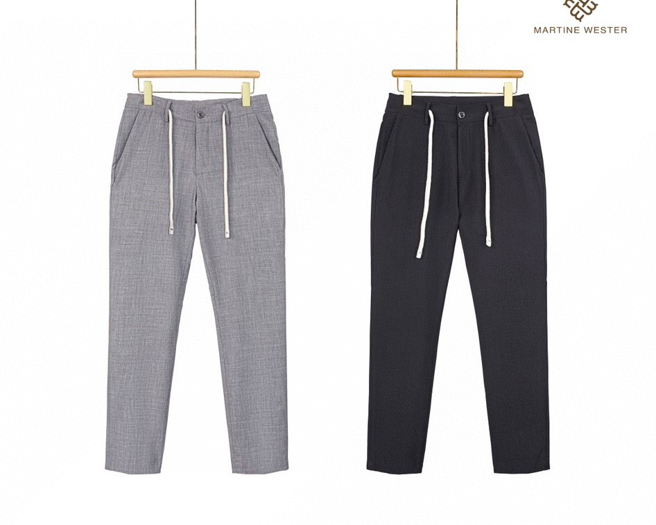 Martine Wester 男色织抗菌面料抽绳长裤 客供抗菌面料,垂顺有型、舒适轻肤。 锥形裤型、时尚百搭,slim剪裁适合人体结构,穿着更舒适自然。