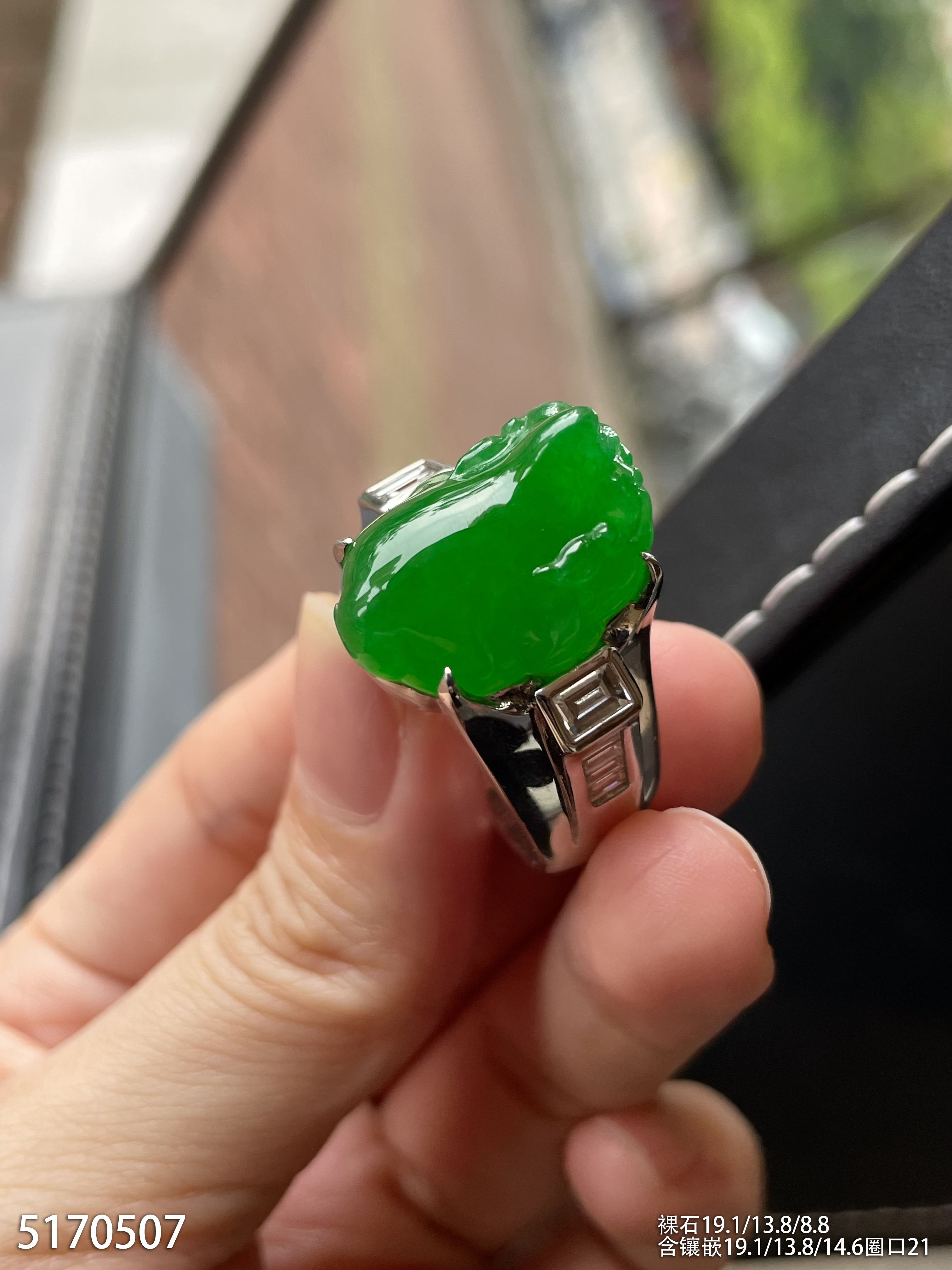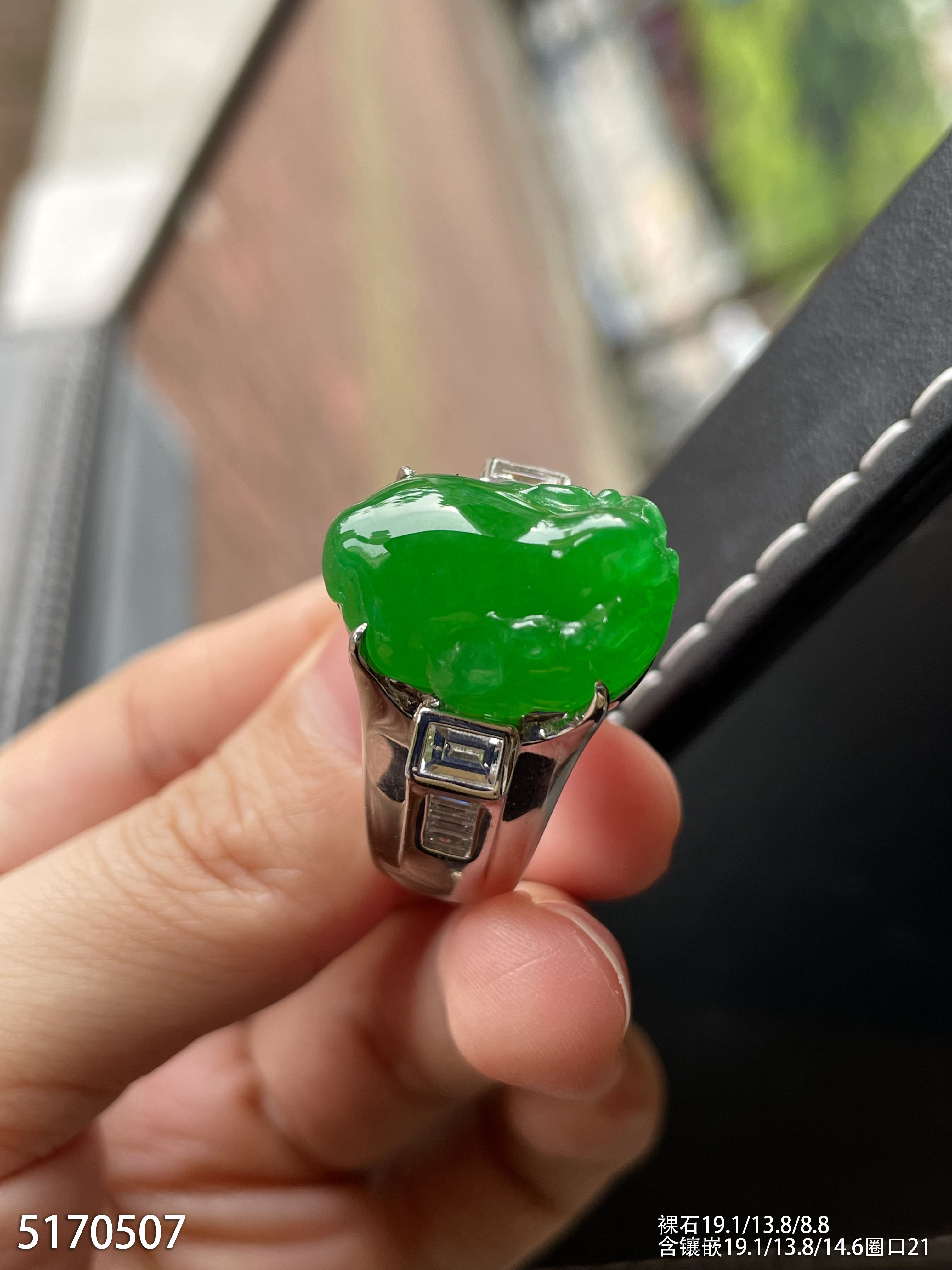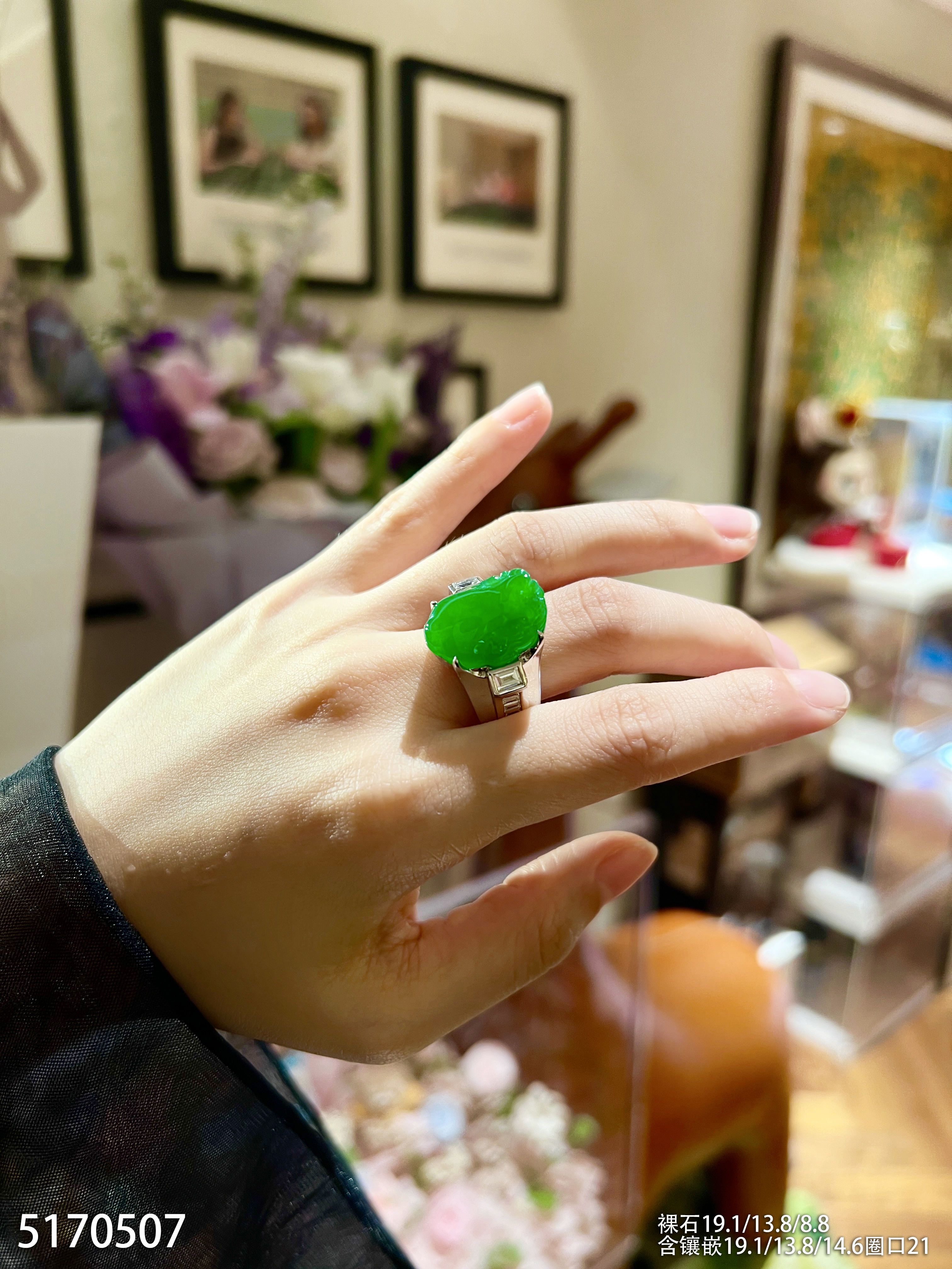 老坑艳绿三脚蟾戒指【5170507】具体价格微信咨询