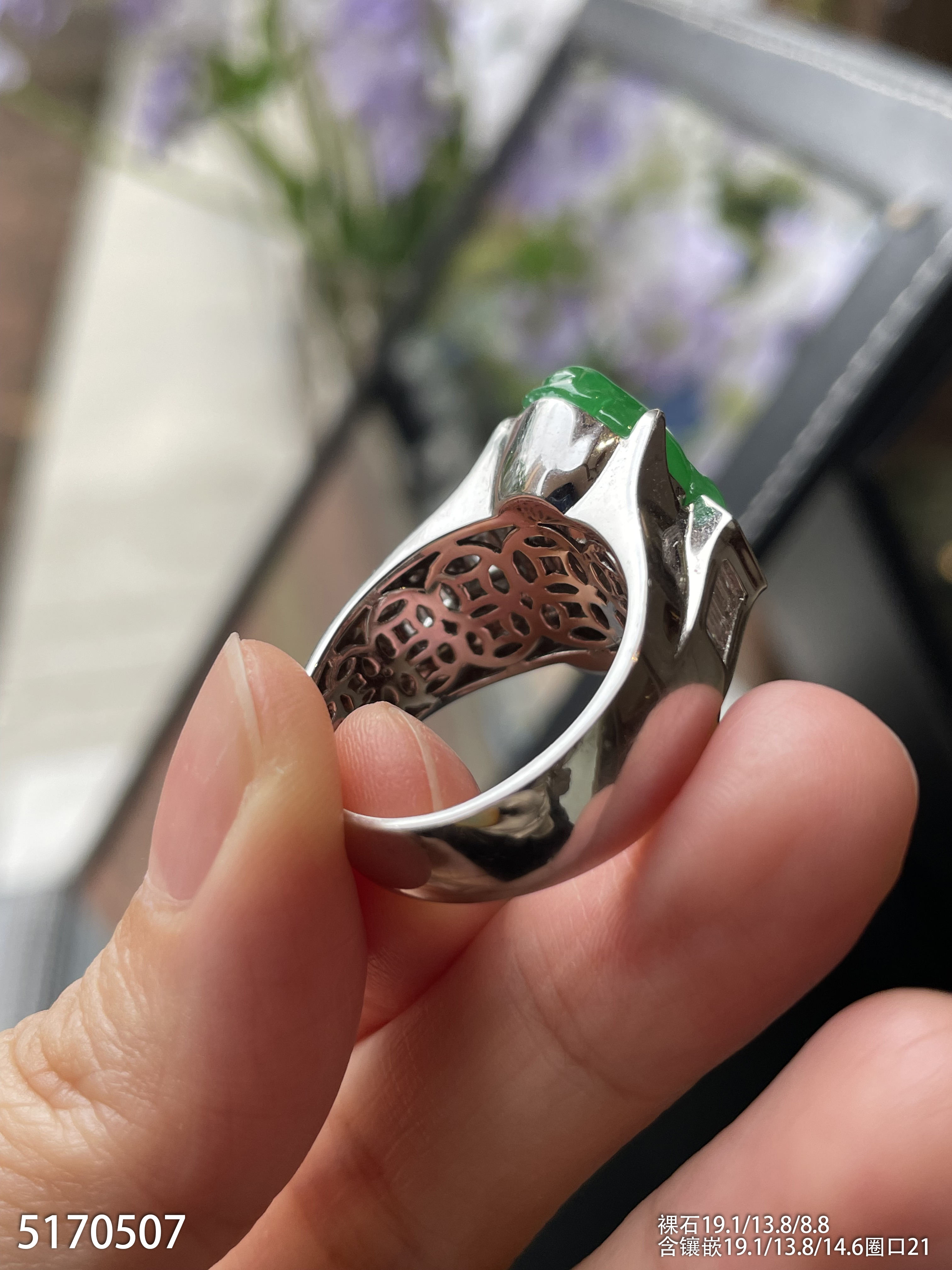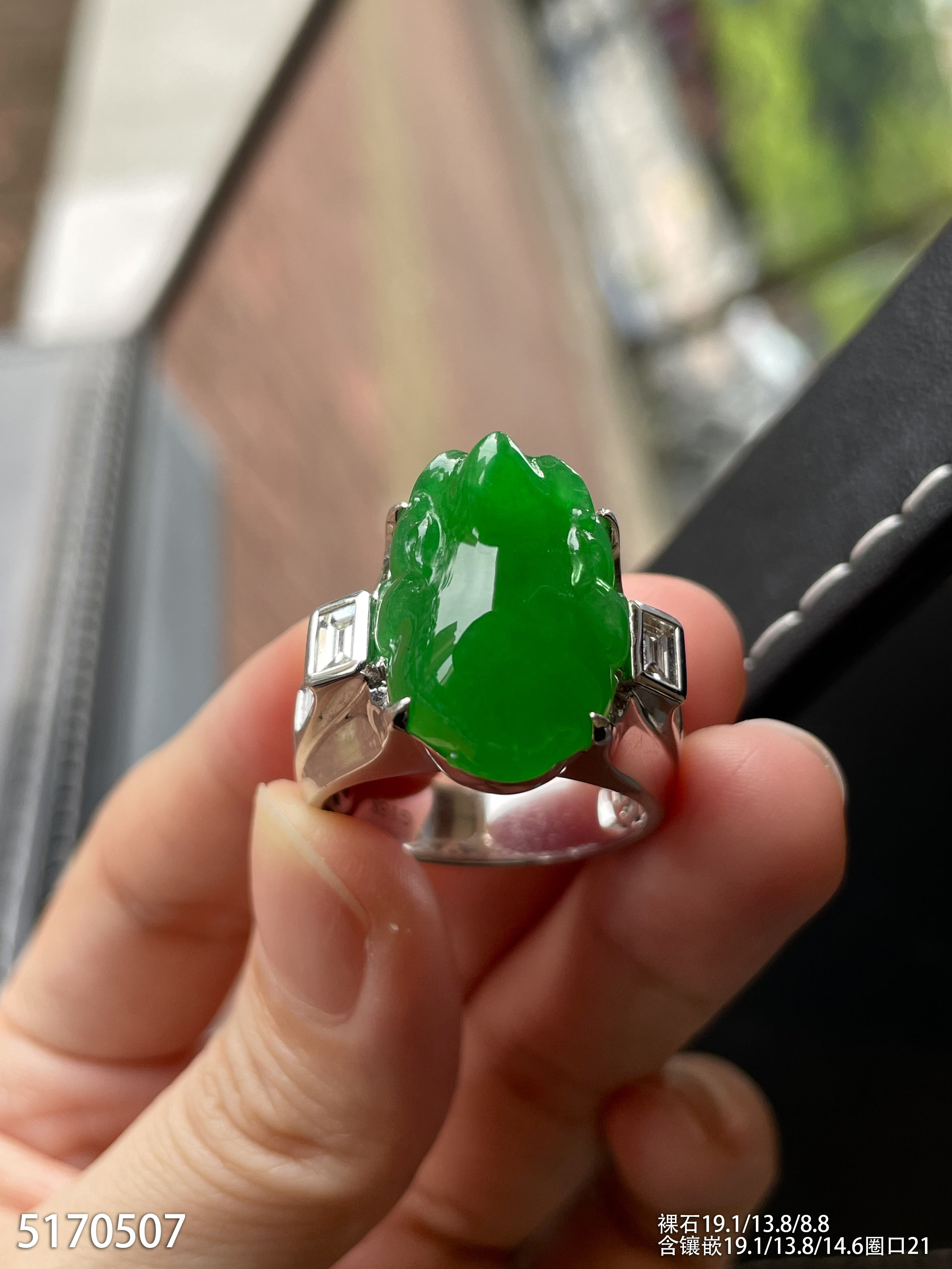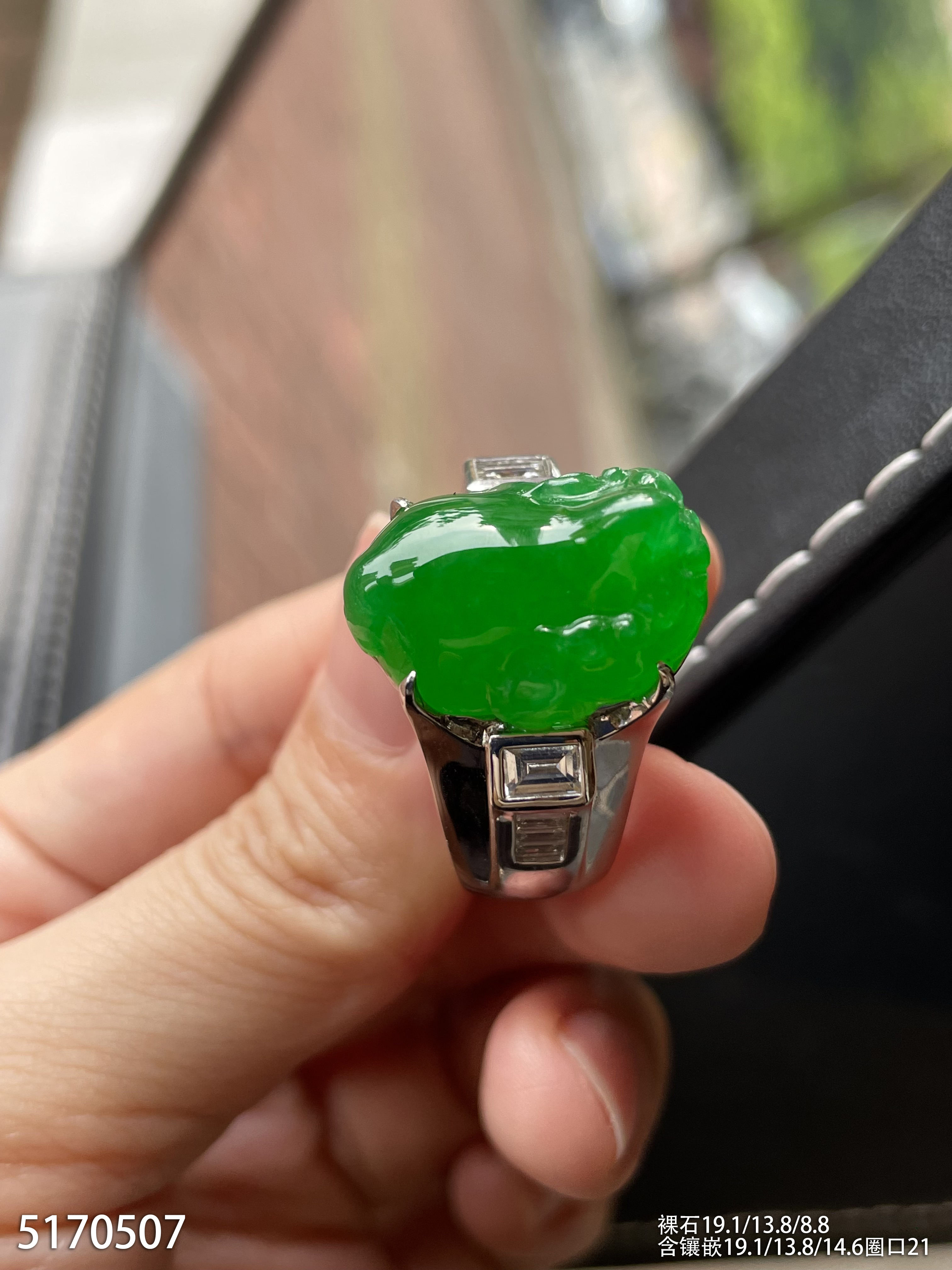 老坑艳绿三脚蟾戒指【5170507】具体价格微信咨询