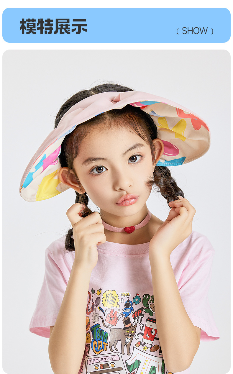 「环绕式大帽檐!四色可选」儿童帽子夏季防晒遮阳空顶帽 宝宝大帽檐太阳帽配饰
